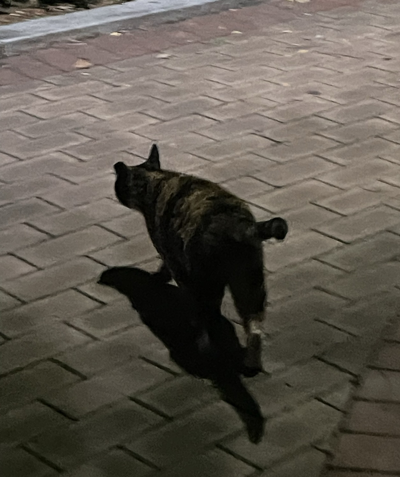 무슨 고알못의 오지랖이었을까. 난 길고양이의 영역이 얼마나 넓은지 그때는 몰랐다. 얘가 자기 밥자리를 잃어버리고 다른 고양이 밥자리에 잘 못 왔다는 어이없는 착각을 했던 거다. 그래서 얘를 내가 봤던 원래 밥자리로 데려다줬는데. 이날이 특히 기억에 남는 건 고작 50미터 남짓 될까 한 거리를 마치 강아지처럼 신나게 쫄래쫄래 폴짝폴짝 따라오는 것이었다! 하.. 어찌나 귀엽던지... 고알못의 뜬금없는 오지랖에 ‘냥이’는 어떤 생각을 하며 나를 신나게 따라왔을까.