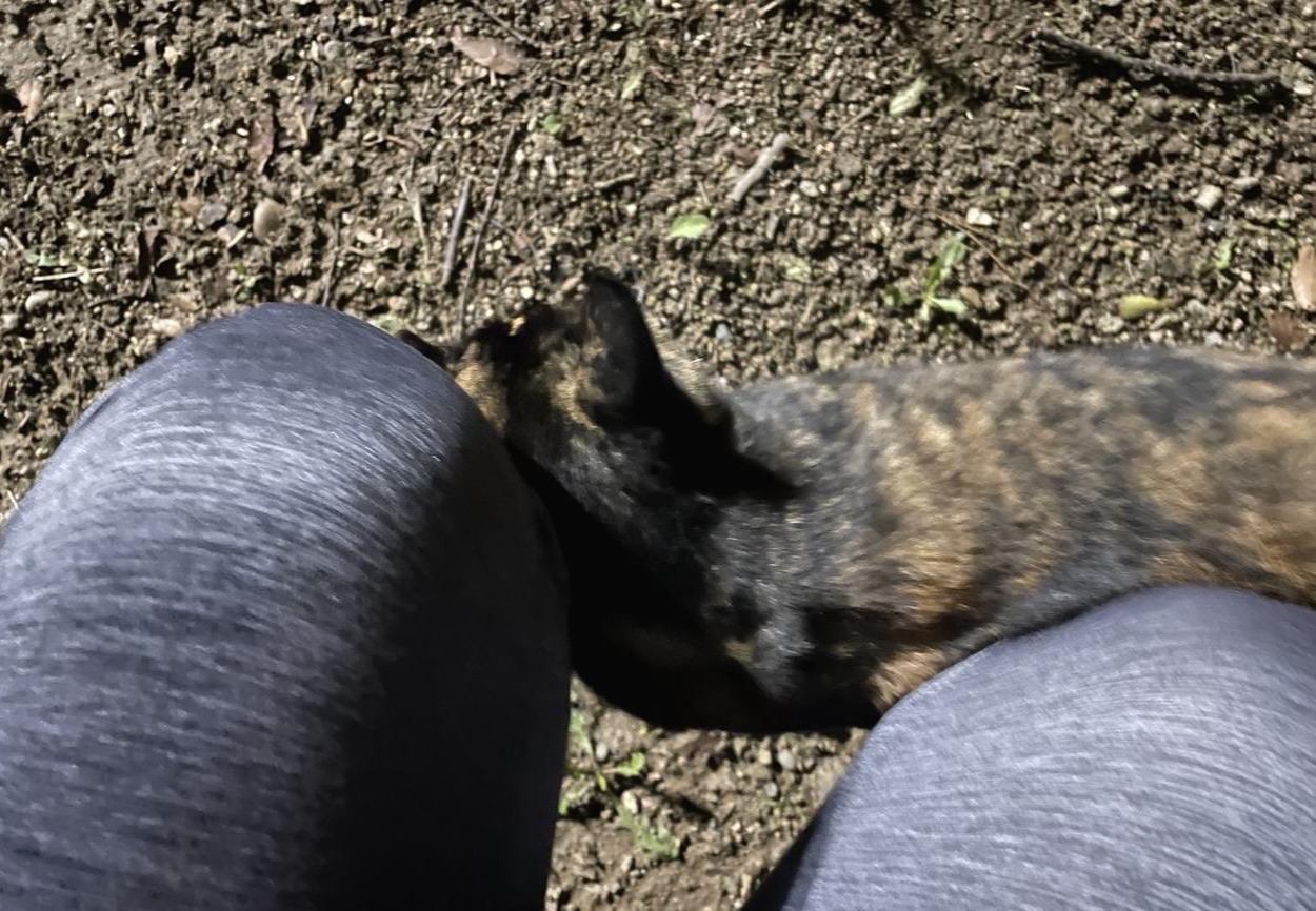 차가운 바람 부는 저녁, 혹시나 몰라 마스크 94를 꺼내 꼼꼼하게 밀착 또 밀착해 야무지게 착용하고 닭가슴살 봉투를 들고 냥이를 만나러 갔다. 요즘엔 추워서인지 빽빽한 풀숲 속 낙엽이 쌓인 곳에 웅크리고 앉아 있을 때가 많다.