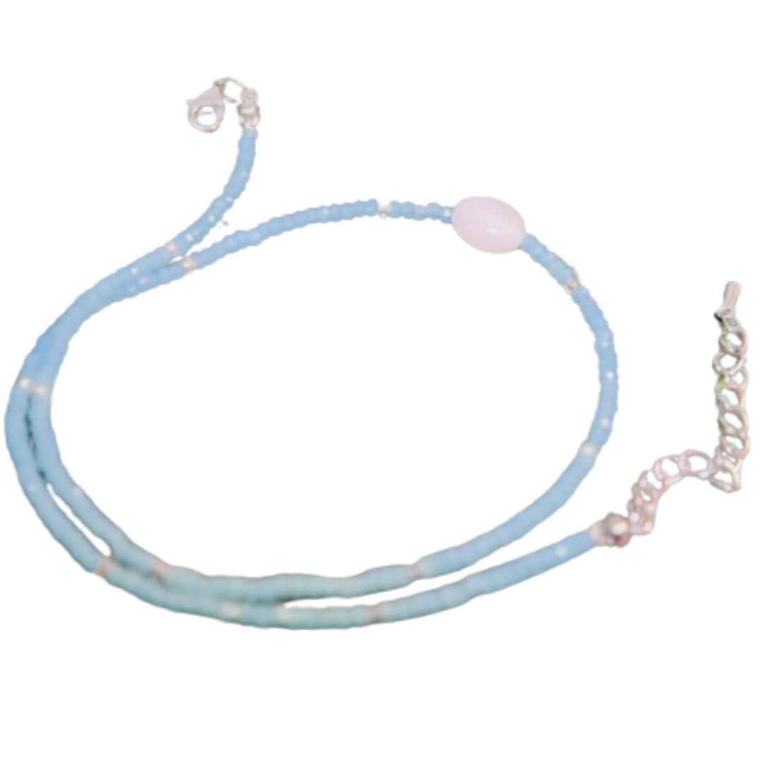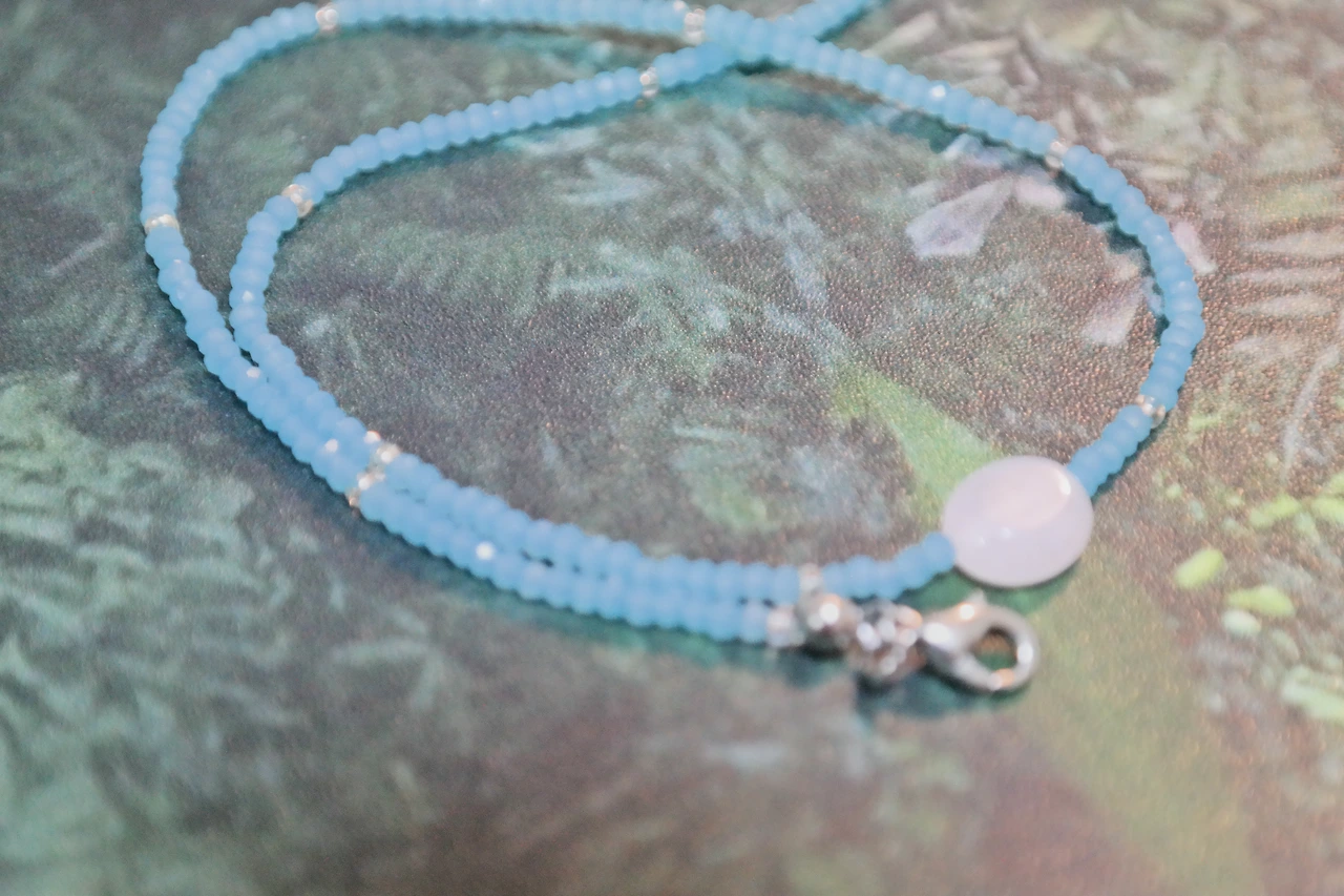 비즈 목걸이가 언뜻 잘못하면 아기같이 보이거나 좀 촌스러울 수 있거든요. 근데 너무 예쁘네요. 옷 색깔도 크게 안 탈 것 같고