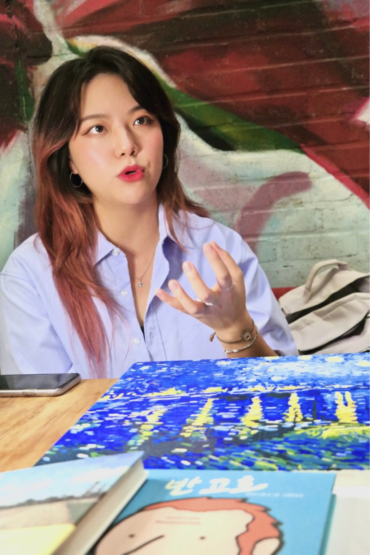 이 책에 고흐가 테오한테 쓴 편지 한 구절이 나오는데 '테오야 나는 언젠가 사람들이 내 그림을 알아줄 거라 믿는다. 그래서 나는 그림을 그리는 이 순간이 괴롭지 않다. 왜냐면 내 그림은 언젠가 사람들의 사랑을 받게 될 걸 알아서, 사람들이 언젠가 나를 사랑해 줄 걸 확신해서 나는 괜찮다' 라고 진심으로 적은 걸 보고 어떻게 상황이 힘들고 어려운데도 아름다움을 바라볼 수 있을까 하면서 마음이 가기 시작했어요. 제가 뭔가에 꽂히면 깊게 파는 스타일이라서 고흐의 모든 걸 다 알고 있거든요. 그러니까 사람들이 제가 예술 사조에 능한 줄 아는데 다른 건 아무것도 몰라요. 고흐 하나밖에 몰라요.