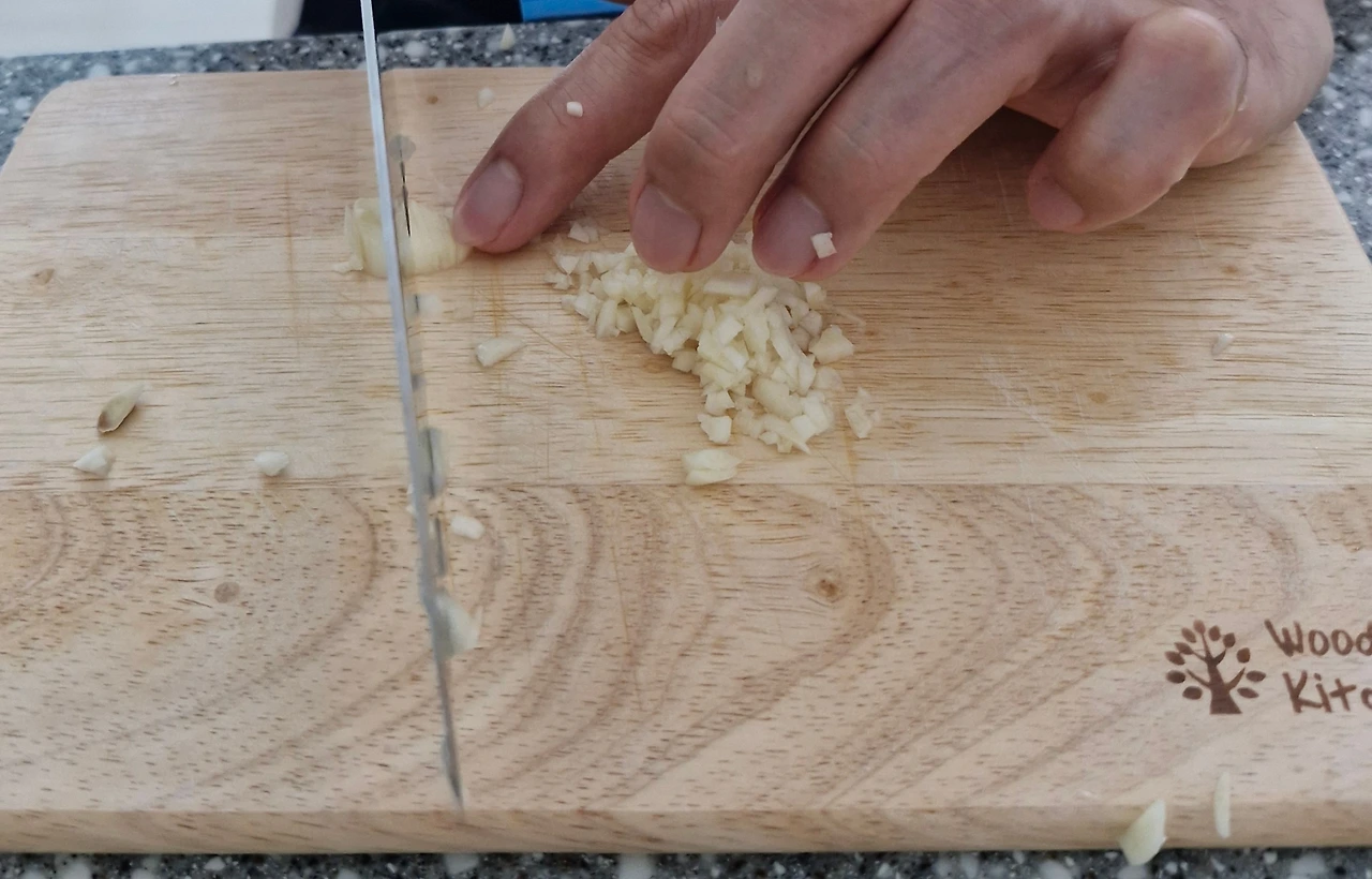 마늘은 최대한 잘게 다져서 넣어야 한다. 마늘을 씹어먹으려고 넣는 게 아니라, 마늘은 들어갔을 때 국물 맛을 훨씬 풍미 있게 만들기 위해 넣는 용도이다.