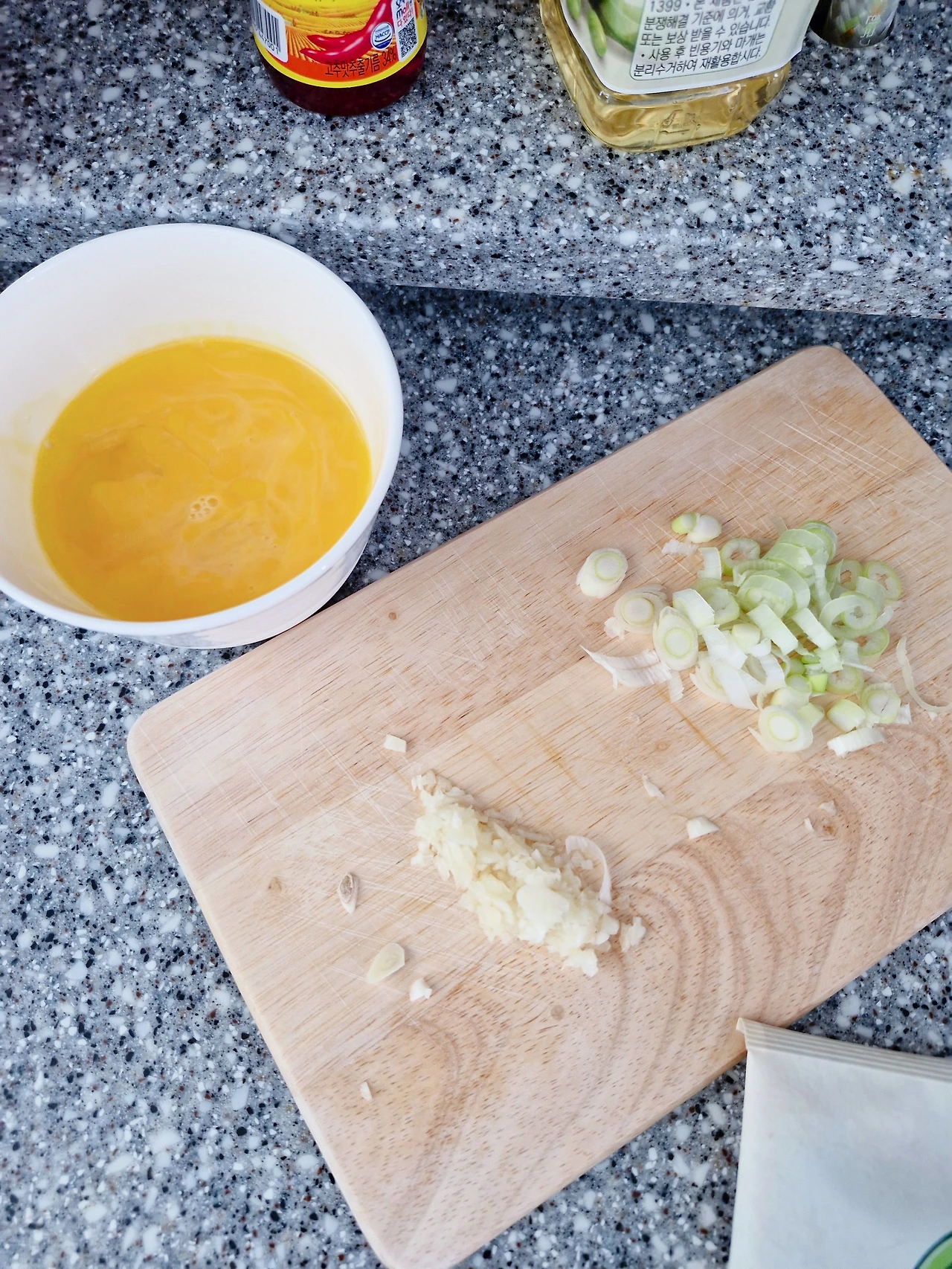 파도 잘게 썰어주고, 계란도 하나 사용한다. 알근을 풀어 잘 섞어주면 된다.