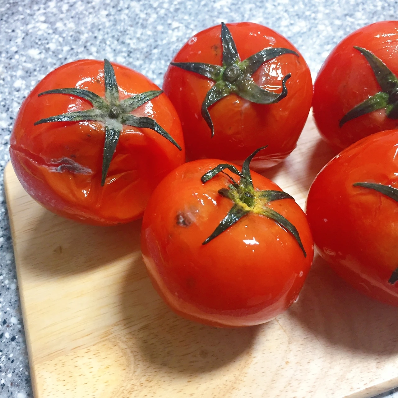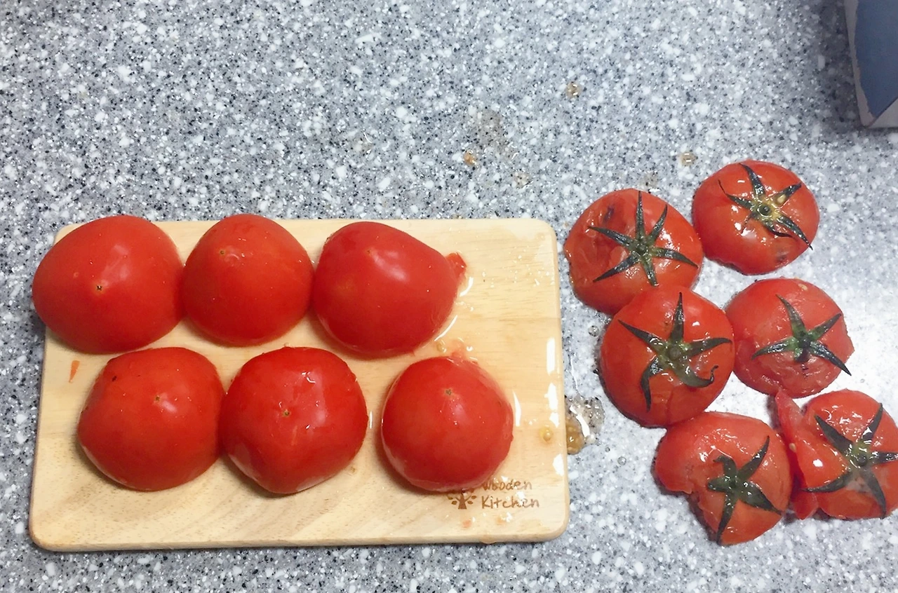 1. 토마토를 깨끗하게 세척한 후 꼭지 부분을 썰어낸다.