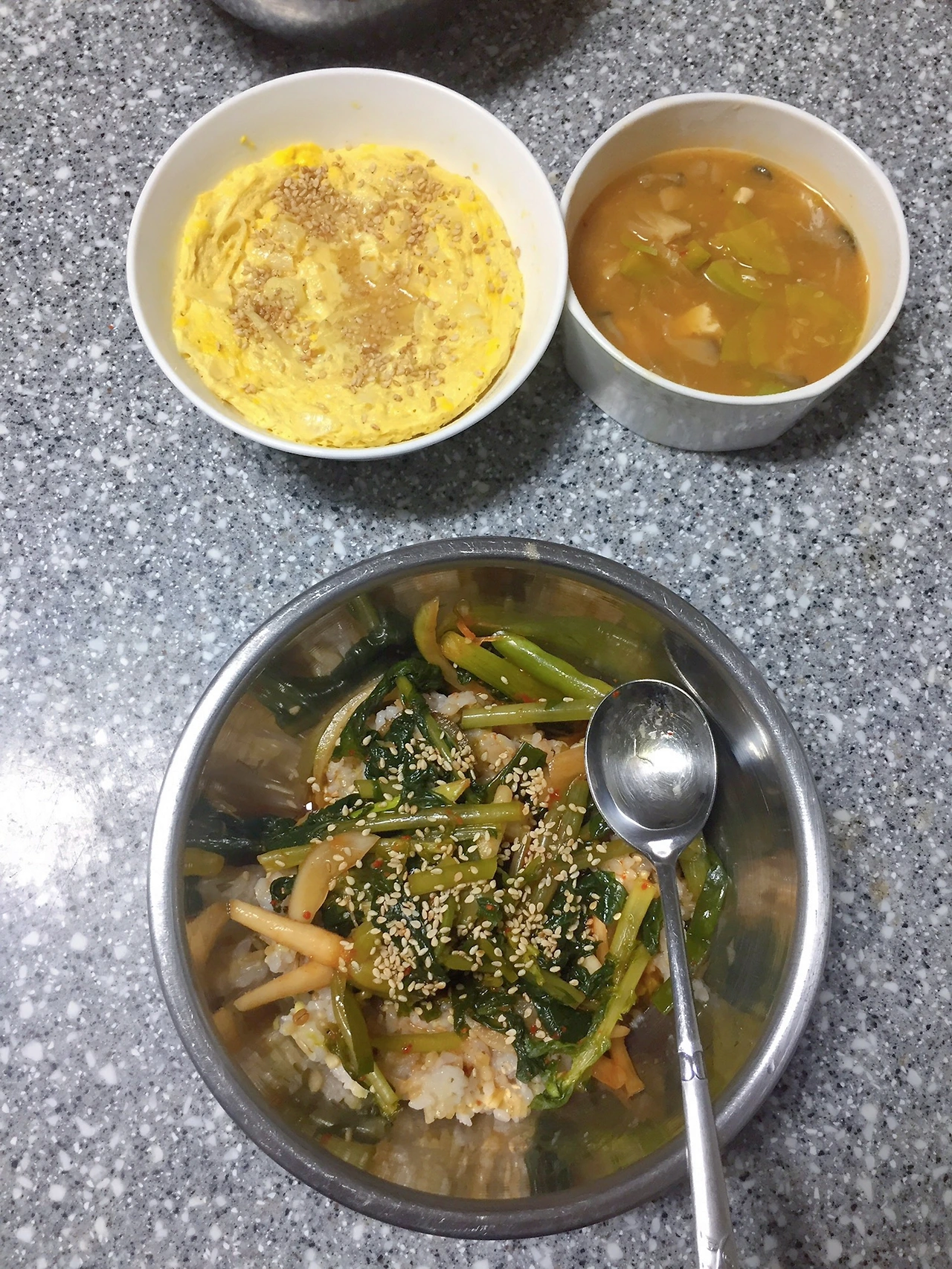 이렇게 열무비빔밥과 계란찜을 함께 먹어주었다.