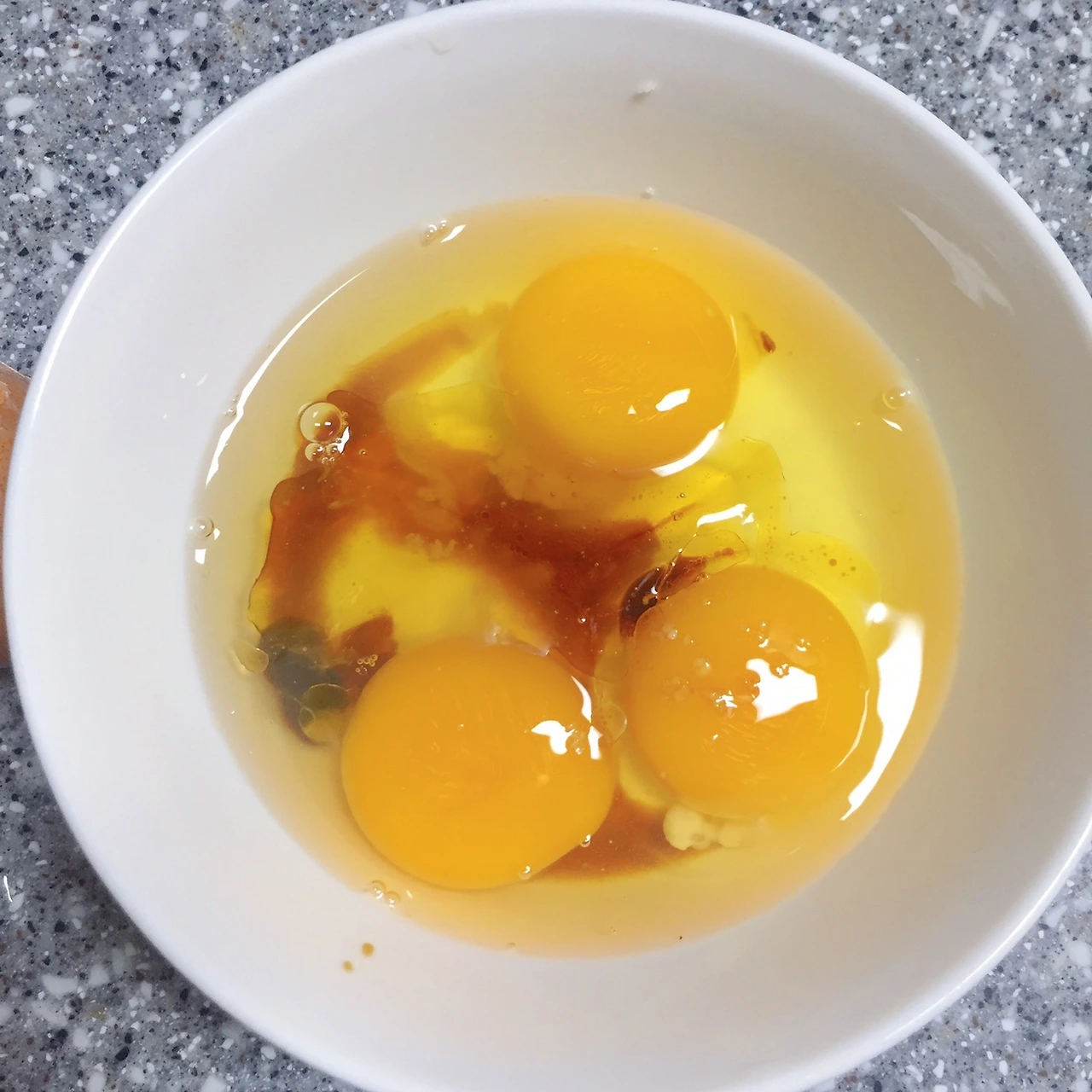 1. 전자레인지에 사용 가능한 그릇에 계란을 깨뜨린다.