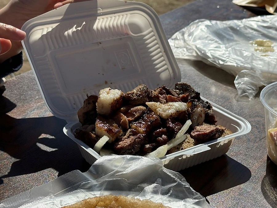 점심으로는 호쇼르(몽골식 튀김만두)를 먹었다. 우리나라 만두와는 다르게 야채 하나없이 고기만 있고 조금 기름져서 내 스타일은 아니었다. 기사님 친구분이 양고기를 구워주셔서 나눠먹었는데 이때 먹은 양고기가 정말 맛있었다. 맛있는 음식을 대접해준 친구분께 몽골어로 ‘감사합니다’라는 뜻의 ‘바얄랄라’라는 말을 처음 써봤다. 바얄랄라~
