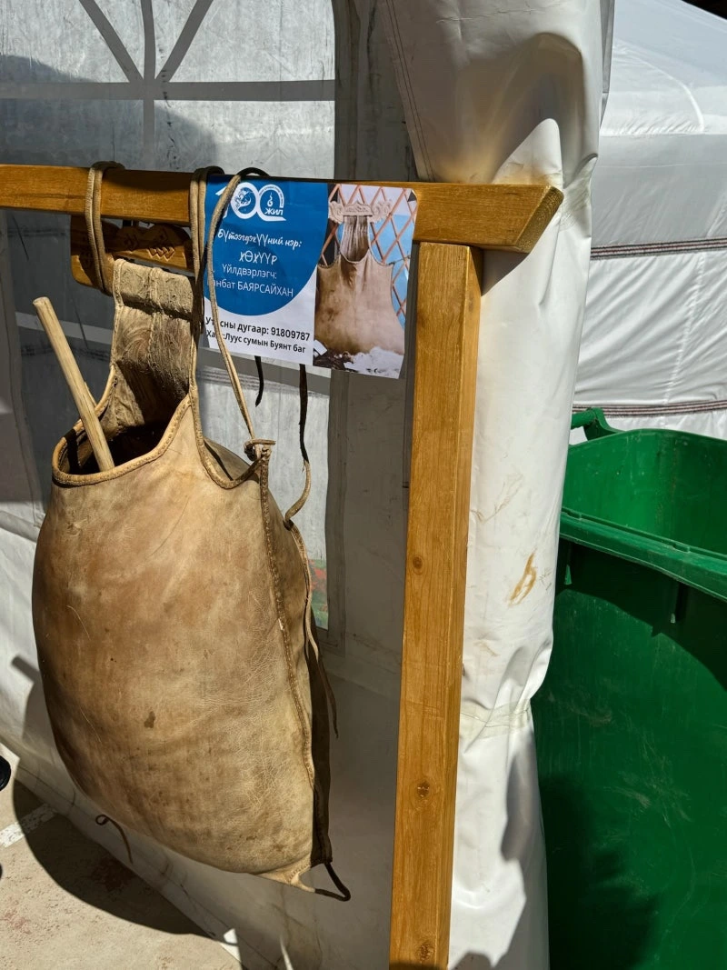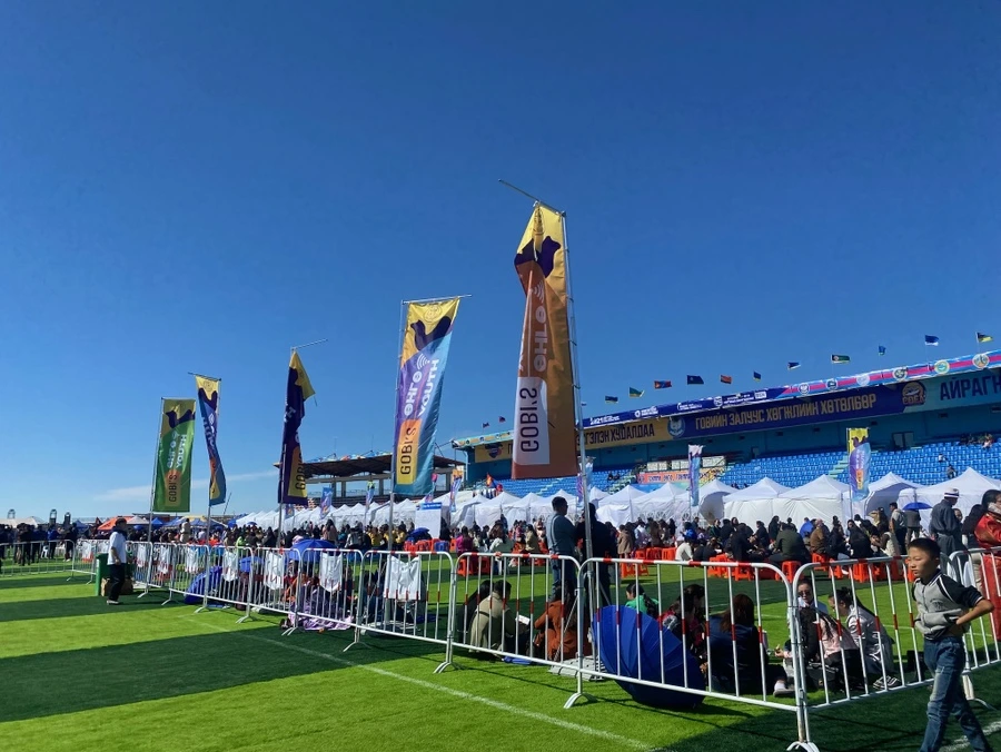 도심과 멀지 않은 곳에서 작은 경기장 같은 건물이 나타났다. 이곳에서 우리는 잠깐 낙타축제를 구경하고 점심도 먹기로 했다. 여행할 때 그 나라 로컬마켓을 구경하는 걸 좋아하는데 마침 지역축제가 열렸다니 그야말로 행운이었다. 축제에서 몽골전통의상, 낙타양말, 승마용품을 구경하고, 몽골 전통주인 마유주와 낙타 젖 치즈를 맛봤다. 시큼한 유제품이었는데 처음 먹어보는 신기한 맛이었다.