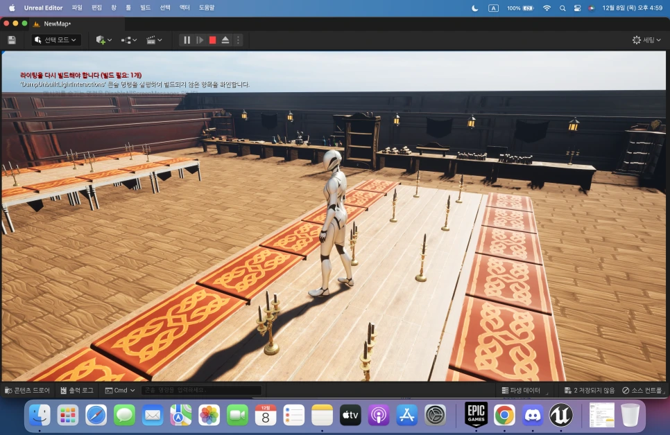 유일무이하게 레벨디자인 제작하면서 모듈을 놓는 재미가 있었다. 보통 그래픽 사양 높은 컴퓨터로 작업을 하지만 난 새로 나온 2023년형 Mac Air로 언리얼 설치해서 외장하드 1 테라 사가지고 작업했다. 최근에 포트폴리오 빼고 언리얼 포함해서 싹 다 지웠더니 90기가 드라이브가 생겼다. 나름 학생들에게 선생님 레벨디자인 수업자료로 활용할 수 있게 됐다. 당당하게 얘기해야지 게임에 미친 수강생들 중에서 1등 먹었다고 ㅋㅋㅋㅋㅋㅋ