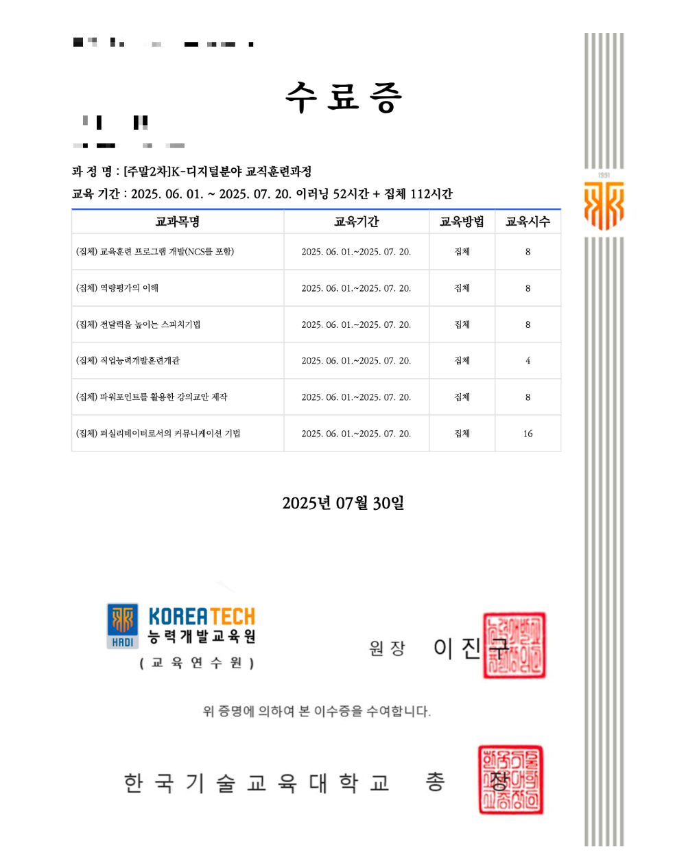 K - 디지털분야 교직훈련과정을 마치고