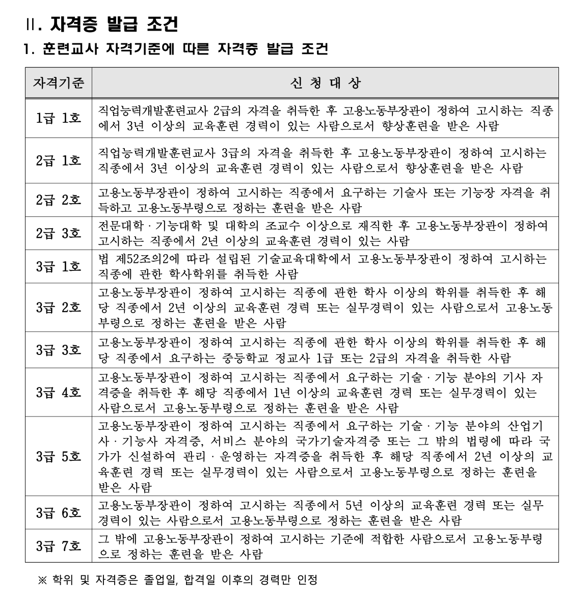 그리고 3년 단위로 3급 < 2급 < 1급으로 승급? 변경신청할 수 있으나 연봉에는 큰 차이가 없다고 한다;;; 그래도 1급 직훈교사는 우수교사라는 포지션이 있으니 이왕 강의를 시작한다면 직훈교사 3급을 발급받은 이후부터 강의 경력을 쌓는다면 그 모든 시간들이 경력으로 인정받을 수 있다. 나는 3급 2호로 신청했다.