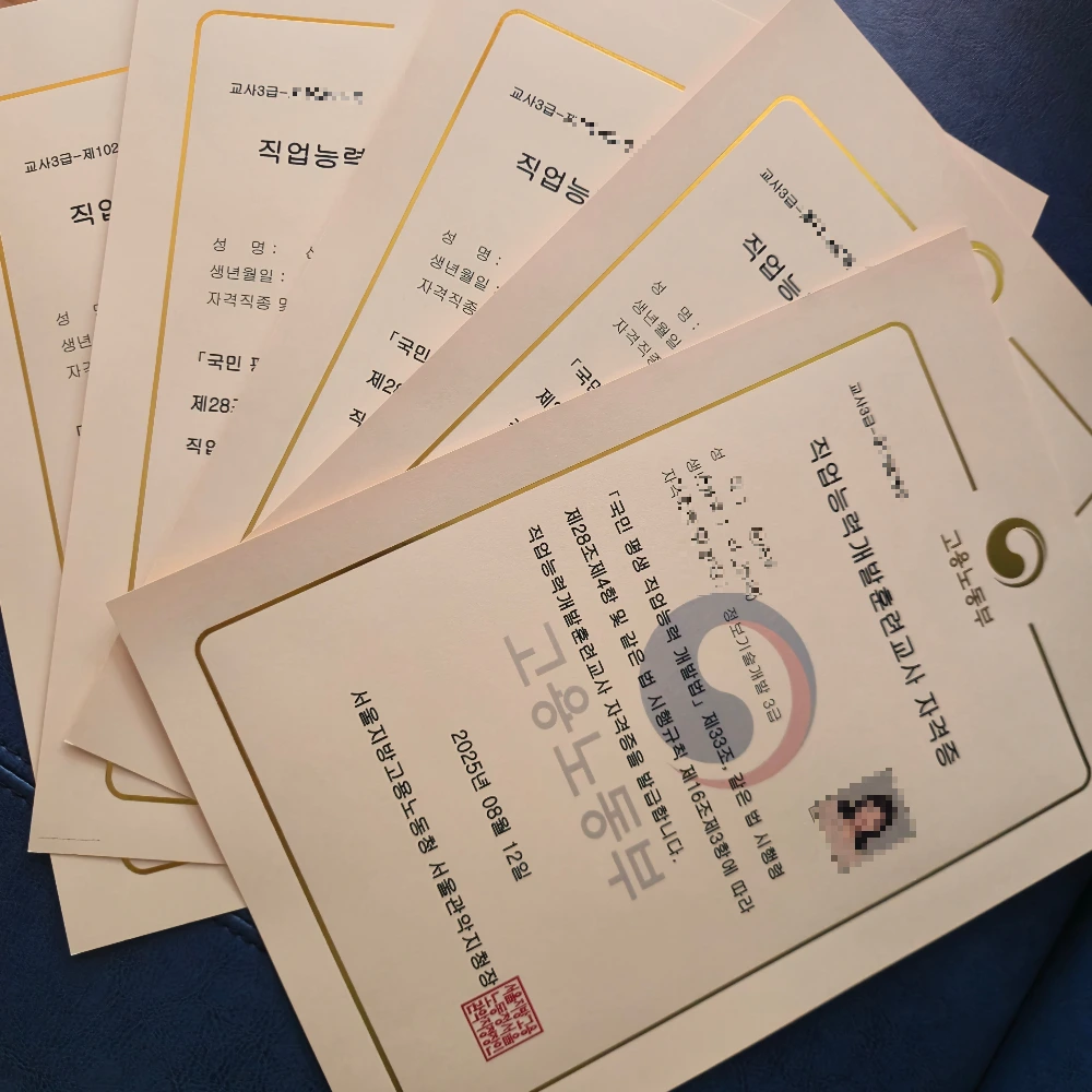 오늘 직업능력개발훈련교사 자격증 3급을 드디어 받았다.