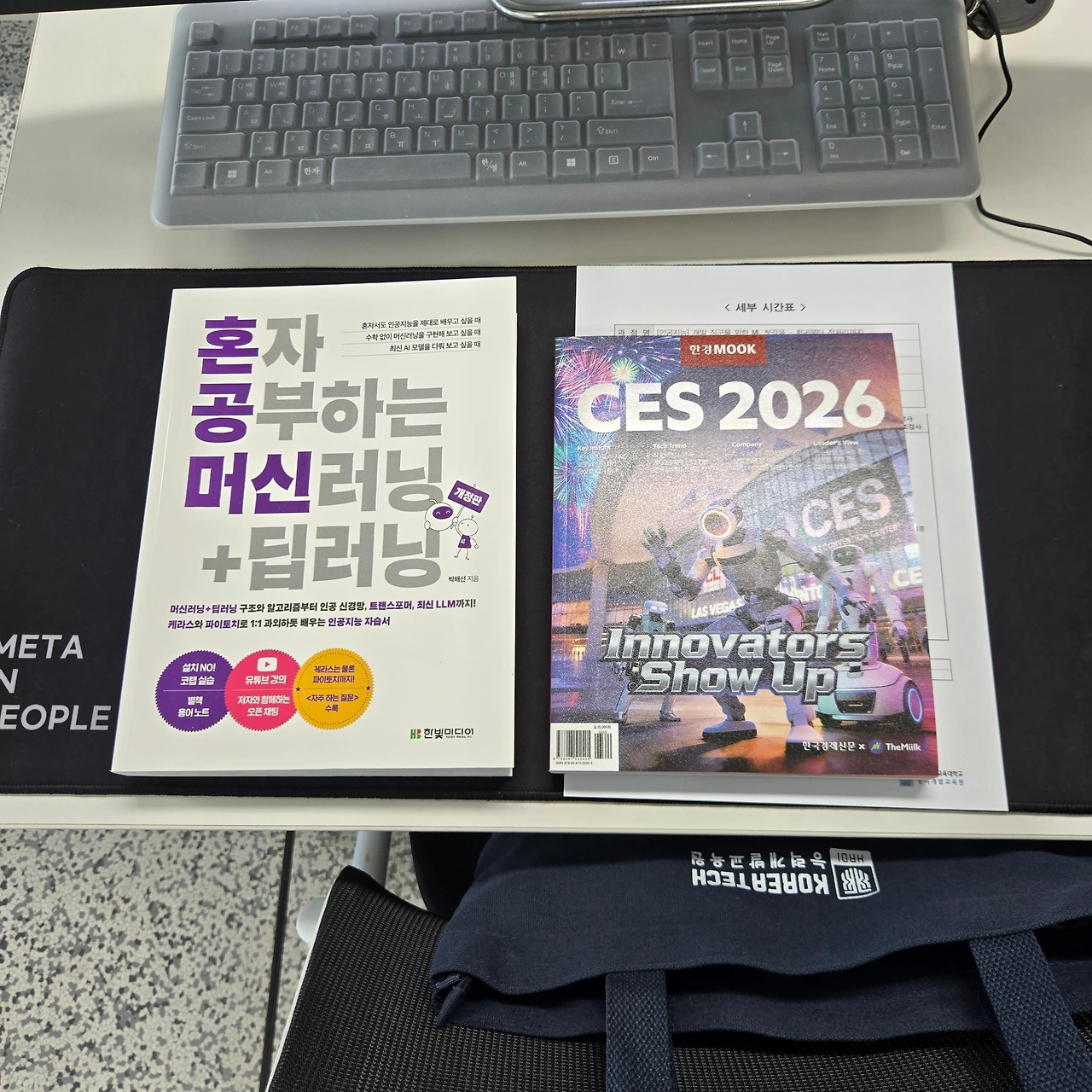그러나 내 자리에 오자마자 개정판 혼공머신 책선물이 땋!!!!! 피지컬 AI 동향 인사이트는 덤!!! 두 책 이쁜가방에 넣고 가라고 에코빽까지 준다.
