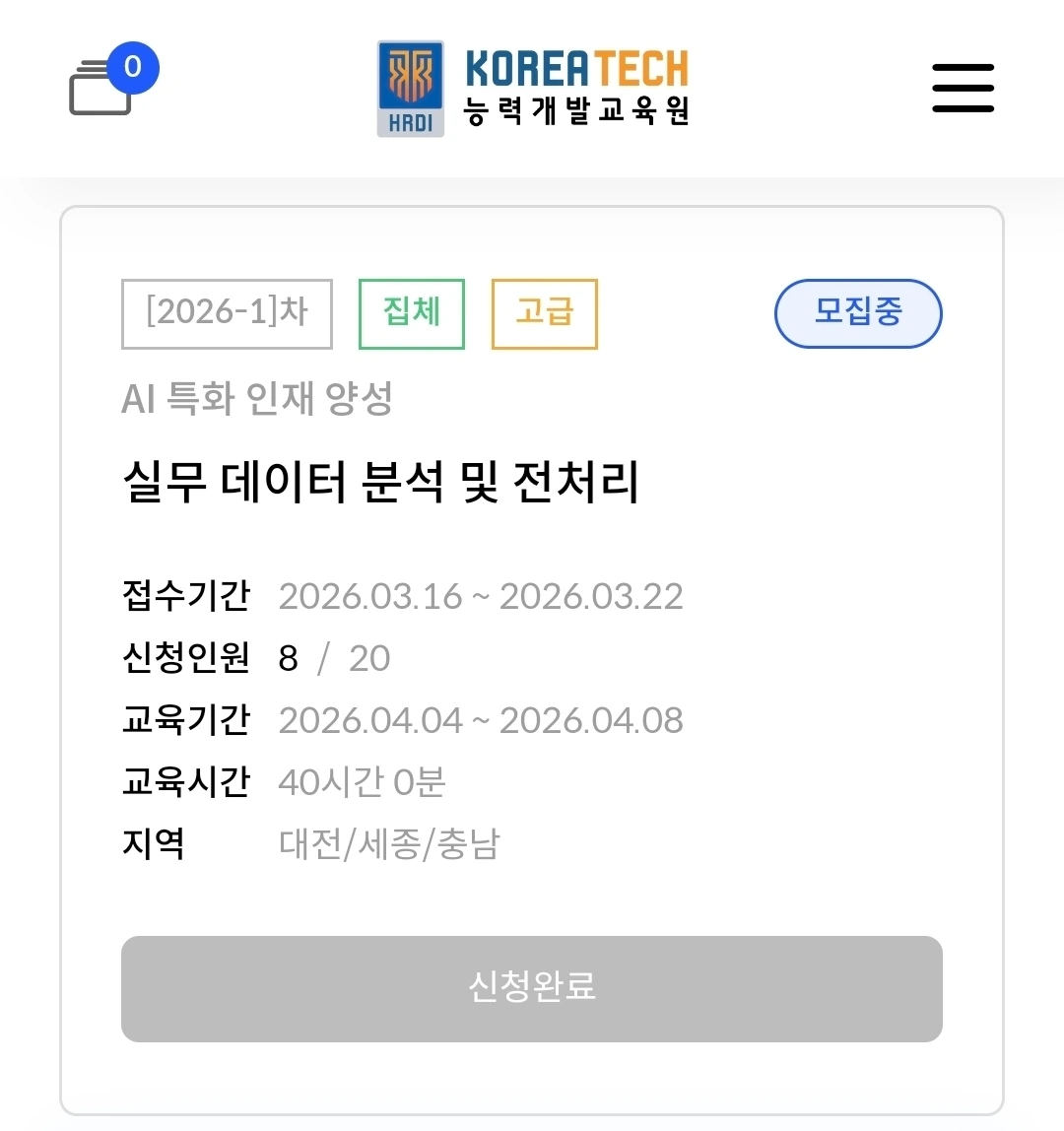 수업을 들었으니, 다음 수업은 천안 제1캠퍼스에서 실무 데이터 분석 및 전처리 과정이다.