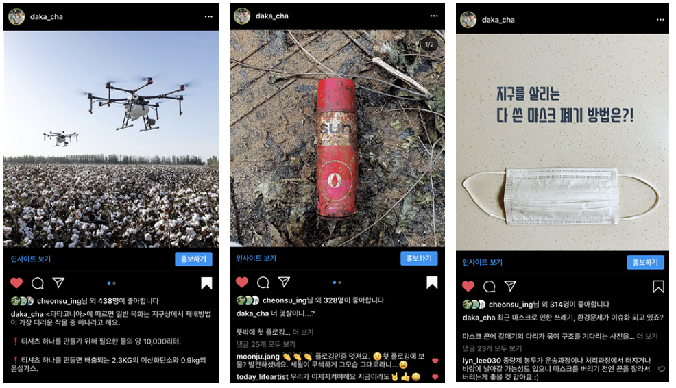 그래도 내가 플라스틱 쓰레기를 만들어내고 있다는 사실은 계속해서 내 어느 곳을 찌르기 시작했고 짧지 않은 시간을 선택의 기로에서 혼란과 보냈다. 그러면서 내가 시작한 것은 환경과 공정무역 관련 인스타그램과 블로그를 시작한 것이다.