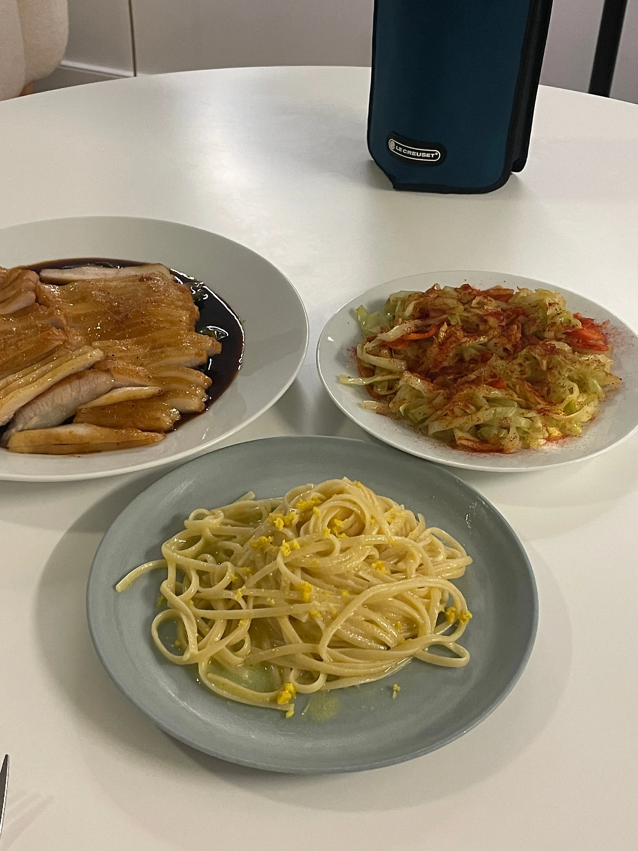 J: 확실히 항정살조림이나 양배추보다 레몬 파스타가 너무 잘 어울려. 항정살은 사실 좀 안 어울리는 것 같아.