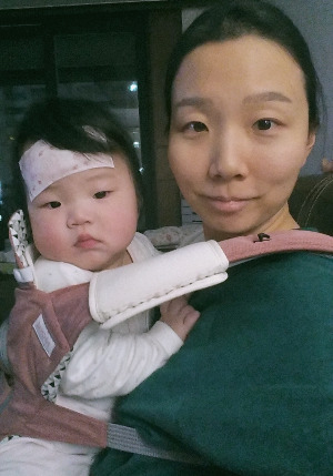 “오구, 아파쪄 울애기? 아야 해? 괜찮아. 병원 갔다가 할미 집 가자.”