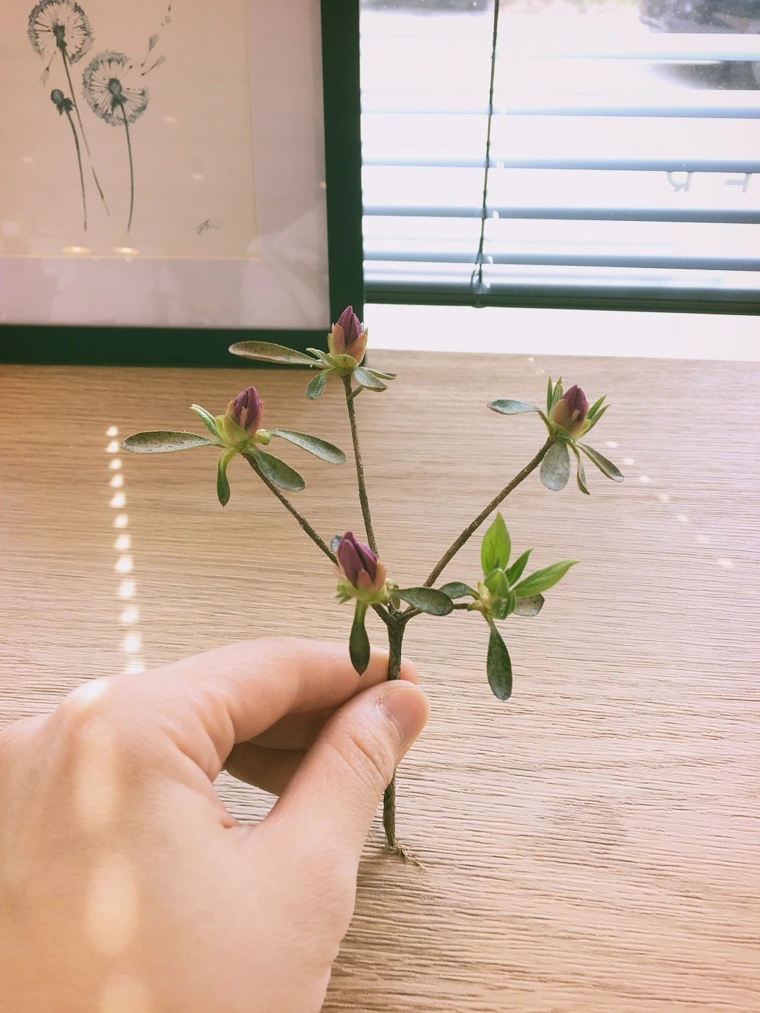 철쭉 꽃봉오리가 달린 나뭇가지를 건넸다.