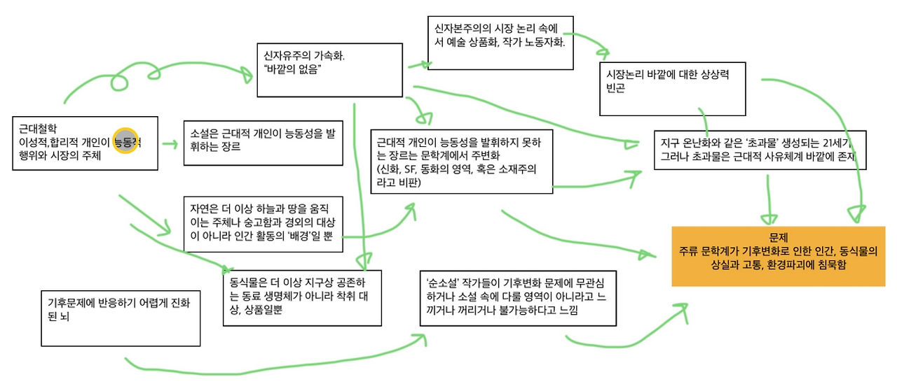 내가 연구하고자 하는 주제는 기후변화시대 소설의 새로운 문법이다.