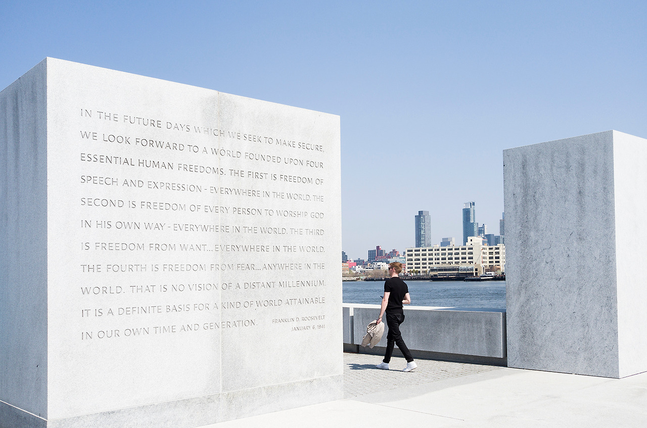 FDR Four Freedom Park_ 캠퍼스 앞에 조성된 잔디 언덕을 지나면 두개의 공원이 더 있습니다. 그 첫번째가 사우스포인트 파크이고 더 안쪽으로 들어가면 루즈벨트 프리덤 파크가 있습니다.