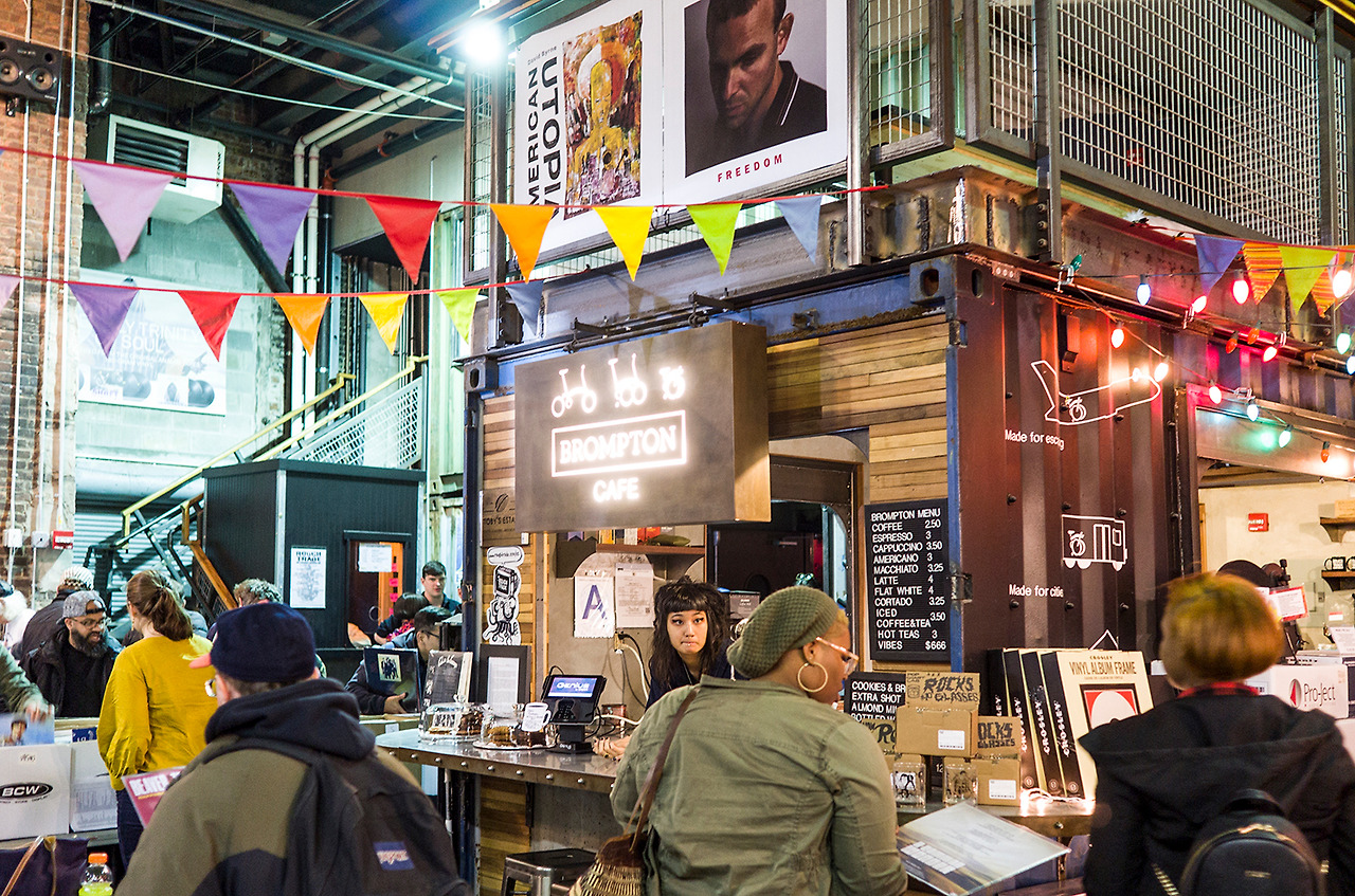 매장에 들어서면 낡은 컨테이너박스의 인테리어가 인상적입니다. 매장 중심은 역시나 LP가 메인 자리를 차지했네요. 매장에는 CD플레이어도 설비가 되어 있어서 천천히 듣고싶은 음악을 감상하실 수 있습니다. LP 등 플레이어도 판매하고 있어서 충동구매를 하실 수도 있습니다. 그리고 영국 자전거 브랜드 BROMPTON과 콜라보한 카페도 눈에 띕니다.