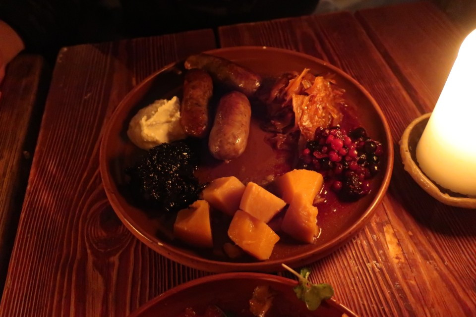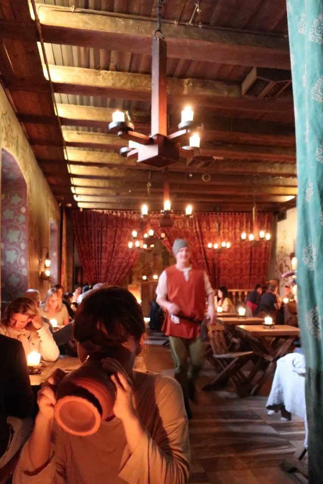점심시간이 가까워져 '올데한자(Olde hansa)'라는 유명한 식당을 찾아갔다. 중세 유럽 식당의 모습을 재현하고자 해서인지 전혀 어떤 실내조명도 없이 오로지 촛불에만 의존해서 식사를 해야 하는 식당이었다. 분명히 밥 먹으러 가자고 했는데 어두컴컴한 실내로 들어가니 씸씸이가 의아했는지 "왜 이렇게 깜깜한 데로 온 거야. 하나도 안 보이잖아." 할 정도로 어두웠다. 눈이 어둠에 적응이 되었음에도 불구하고 너무 어두워서 음식을 눈으로 즐기는 것은 포기할 수밖에 없는 색다른 경험을 할 수 있었다. 서빙하는 스태프들도 모두 중세 유럽 사람들의 복장을 하고 있어서 씸씸이와 우리에게도 재밌는 볼거리를 제공해주기도 했다.
