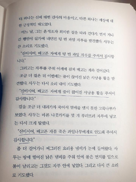 "신이시여, 배고픈 자를 죽은 과일나무에게로 인도해주셔서 감사합니다."