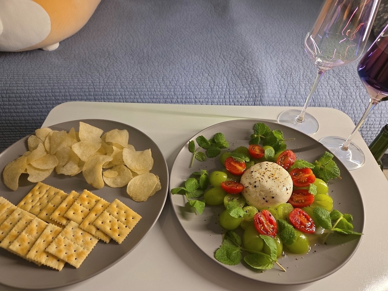 나는 매일 밤 혼자 낭만을 즐기고 있다. 무드등을 틀어놓고 오피스텔에서 보이는 야경을 보며 여유를 즐긴다. 아래 사진은 내가 직접 요리하고 플레이팅 한 와인 안주이다.
