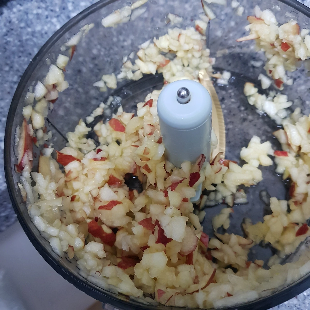 다지기 기계로 사과를 편하게 작게 다지기(남은 절반 사용)