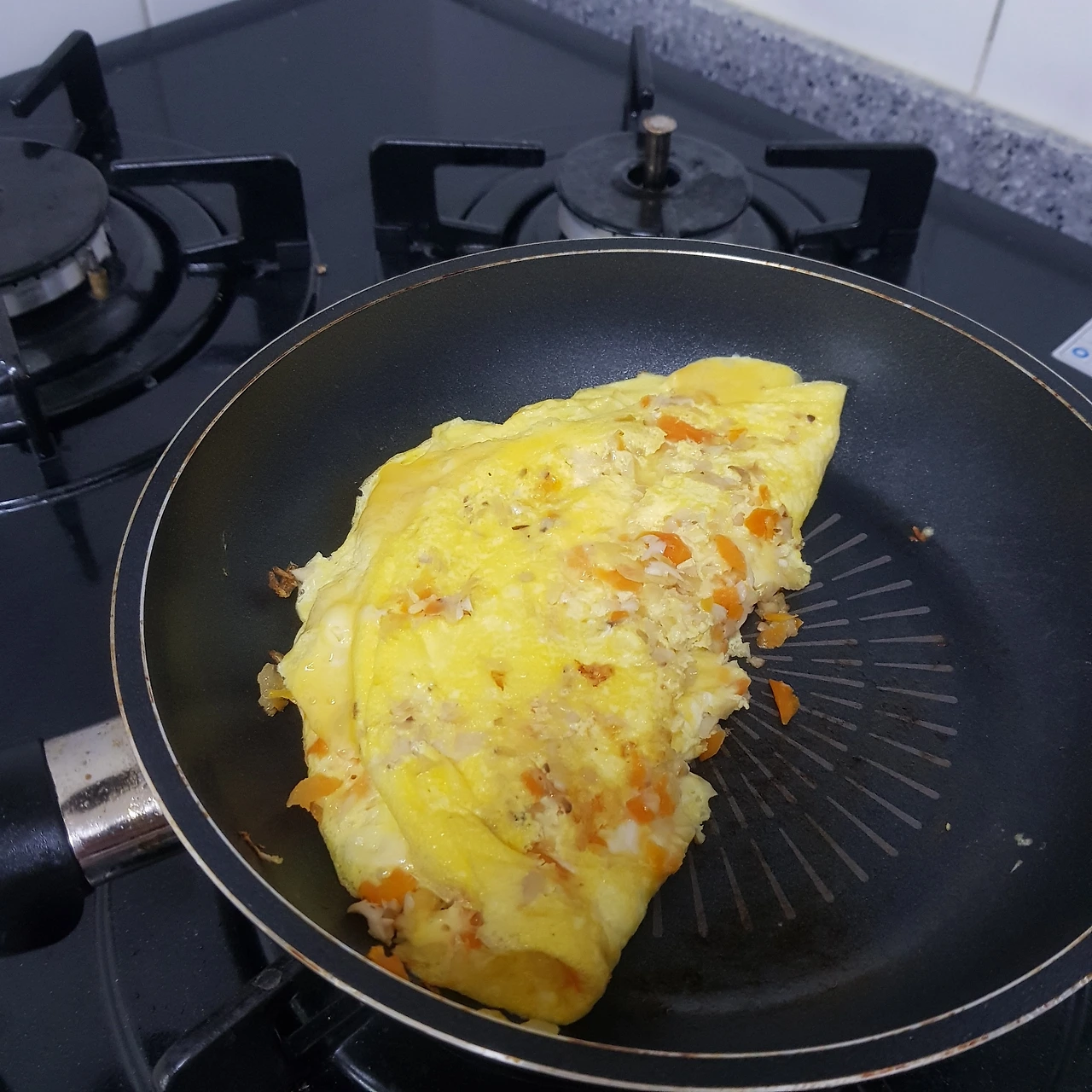 포장 해왔던 똠얌꿍, 공심채 볶음과 함께. 직접 담근 당근 김치도 슬쩍 등장했다. 첫 도전은 집에 놀러온 친구랑 먹고, 꽤 괜찮은 것 같아 언니가 왔을 때 재도전했다. 치즈가 떨어져 삼색 슈레드 치즈(체다, 고다, 피자치즈)를 쓰고, 냉장고 구석에 보이던 방울토마토도 살짝 잘라서 같이 넣었더니 점심보다 더 맛있었다. 물론 무슨 요리든 치즈를 많이 넣으면 맛있긴 하지만... 저녁에는 욕심을 좀 내서 계란을 3개를 넣었었는데, 우리집 작은 후라이팬에 3개는 좀 많았던 것 같다. 꽉차서 잘 익지도, 접히지도 않아서 다 찢어졌다. 그래도 다져둔 당근과 양파는 오믈렛 두 번과 볶음밥 한 번으로 클리어!