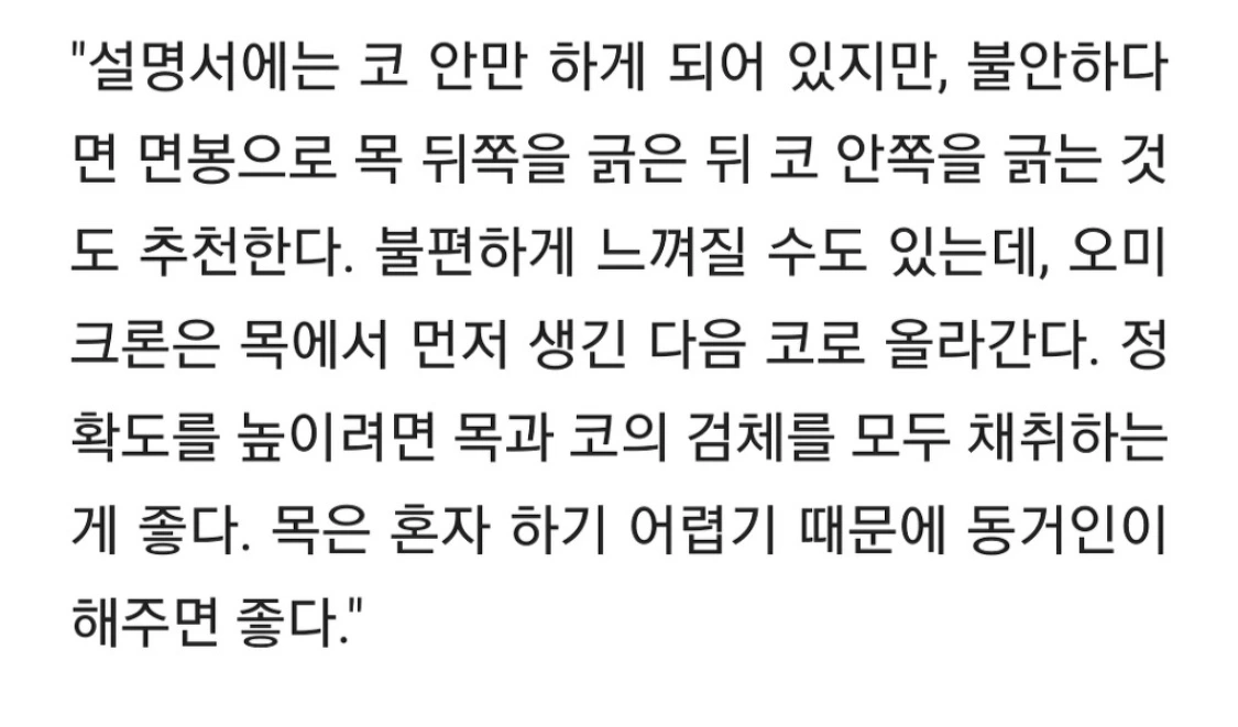 요 짤을 보고 목까지 검사했다. 구역반사를 조심하라고 하는데, 확실히 먼저 결과를 알 수 있긴 하다.