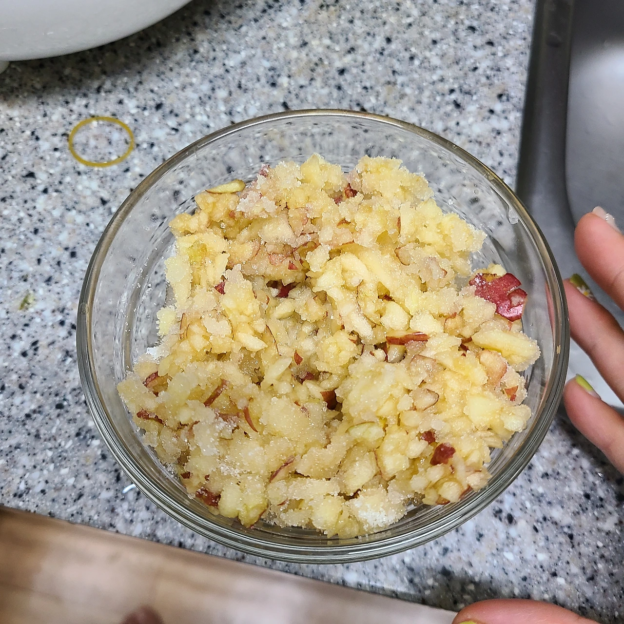 1. 사과를 다진다. 잘게 다질수록 쉽게 된다.