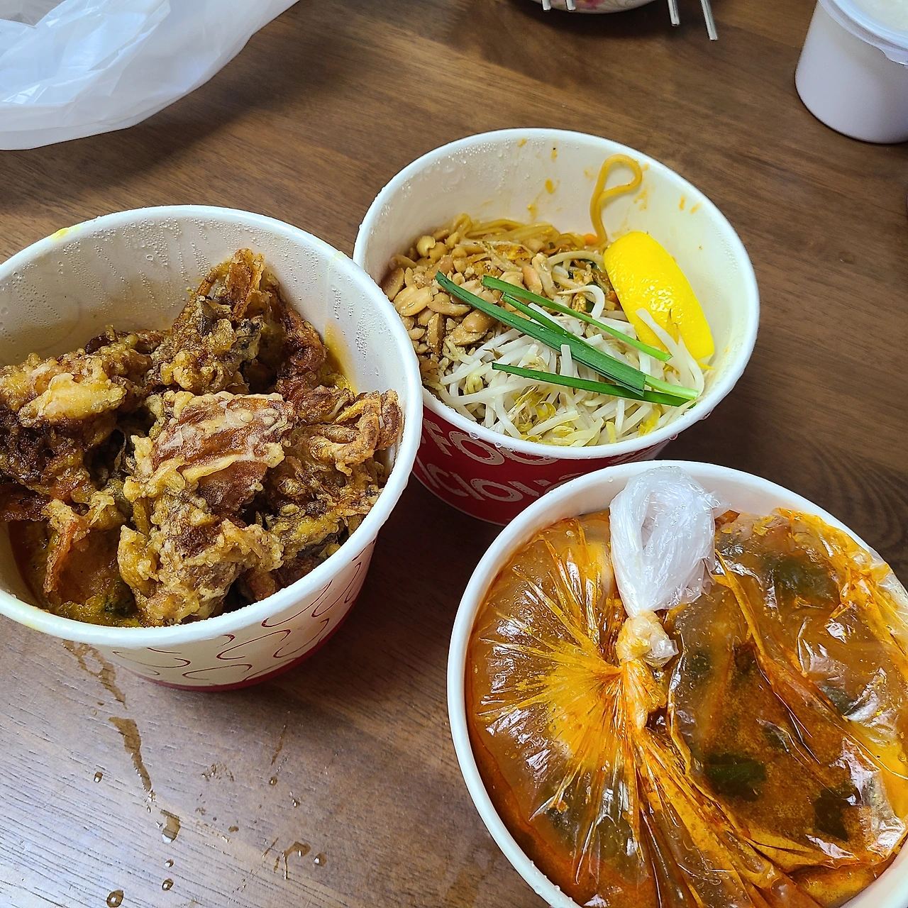저녁에는 남은 것들을 먹으면 되겠다, 하고 있었는데, 갑자기 아빠가 집 앞에 음식들을 두고 가겠다며 오는 중이라고 연락이 왔다. 1년에 한 번 올까말까한 거리를(편도 1시간반) 그것도 차 막히는 금요일 오후에 딸내미 좋아한다고 이름도 잘 모르는 뿌팟봉 커리와 똠얌꿍, 팟타이를 사들고 오신 아부지ㅜㅜ... 문 너머에서 손짓으로만 인사를 하시곤 다시 돌아가셨다. 차에 바로 실어서 와서 그런지 아직 따뜻했다. 언니와 바로 업무를 중단하고 조금 이른 저녁을 챙겨먹고는, 같이 챙겨주신 홍삼액과 쌍화탕(앗 사진이 없네), 그리고 어머니가 챙겨주신 꿀까지 야무지게 챙겨먹었다. 감샤합니다ㅠㅠ.