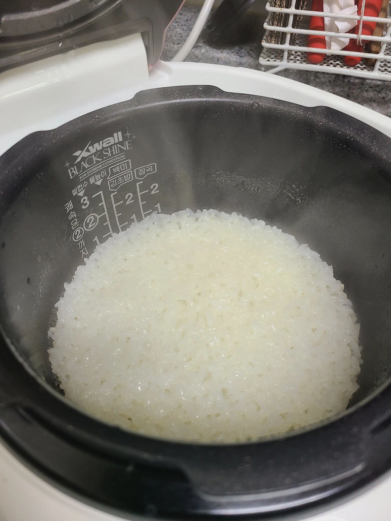 나는 작은 밥솥이래서 정말 작을 줄 알았는데, 그래도 에어프라이어보다는 컸다. 싱크대 선반 구석에 들어갈 자리가 그래도 있어서 다행이었다.