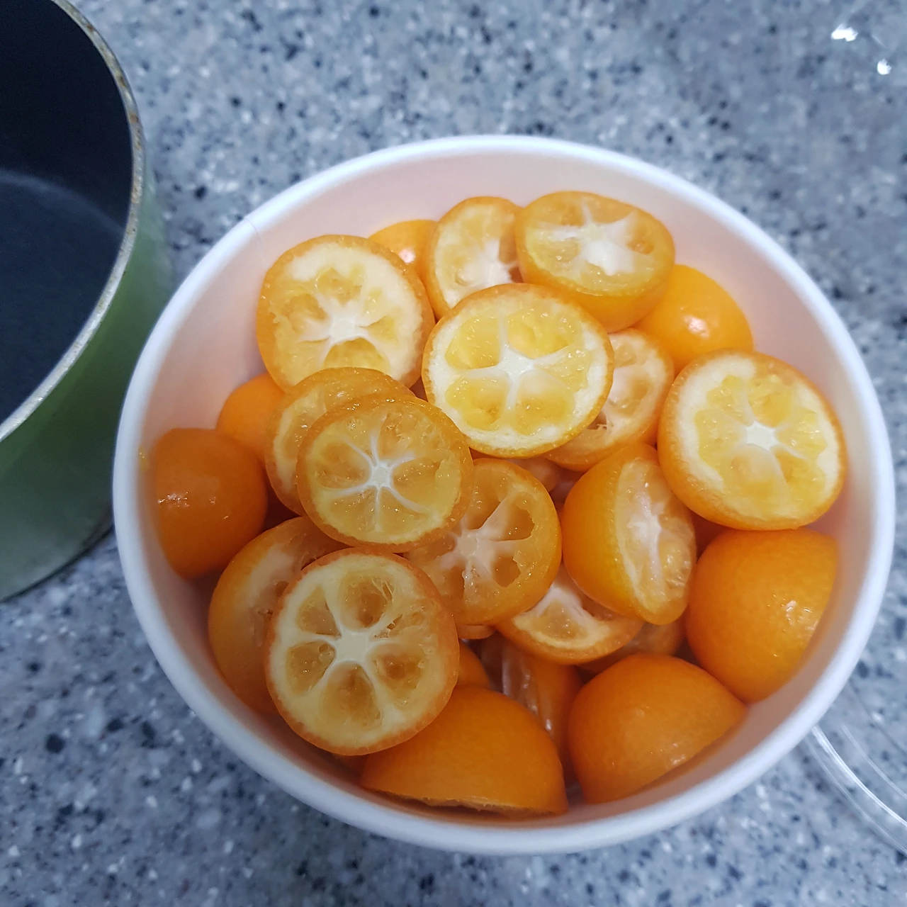 1. 금귤을 잘 세척하고, 꼭지를 따고, 반을 갈라 씨를 제거한다. (나는 여기까진 해 둔 상태였다)