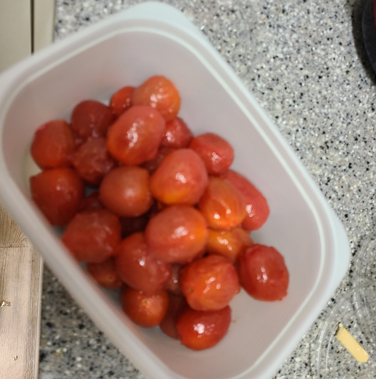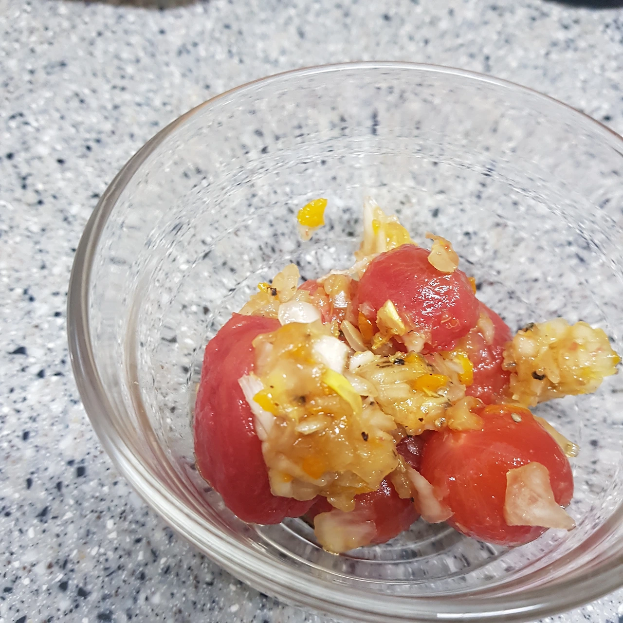 어쩌다 보니 지난 일들로 글쓰기가 미뤄진 남은 방울토마토. 그 주 주말에 바로 마리네이드를 했었는데, 쓸만한 분위기(?)가 아니었어서 미뤄뒀었다. 참고한 레시피는 여기.유자청 대신 만들어 두었던 금귤청을 사용했고, 씨겨자나 파슬리가 없어서 그런가 아니면 방울토마토 양이 너무 많아서 그런가 다음 날 반찬으로 먹으니 식당에서 먹던 맛은 아니었어서 살짝 아쉬웠다. 그치만 일주일을 방치했다 먹으니 맛있어졌다! 아무래도 양념이 토마토보다 적었나 보다.