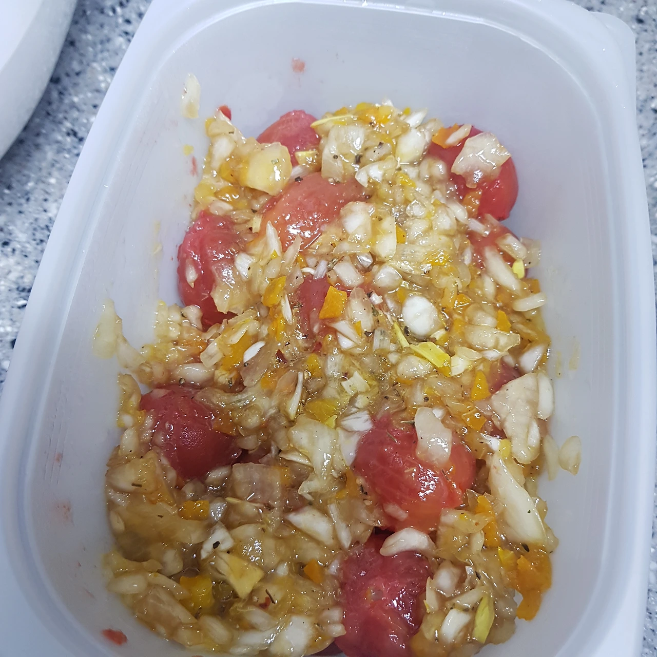 <토마토 절임(마리네이드) 만들기> 1. 절임 소스를 만든다. 2. 껍질을 벗긴 토마토와 잘 섞는다!