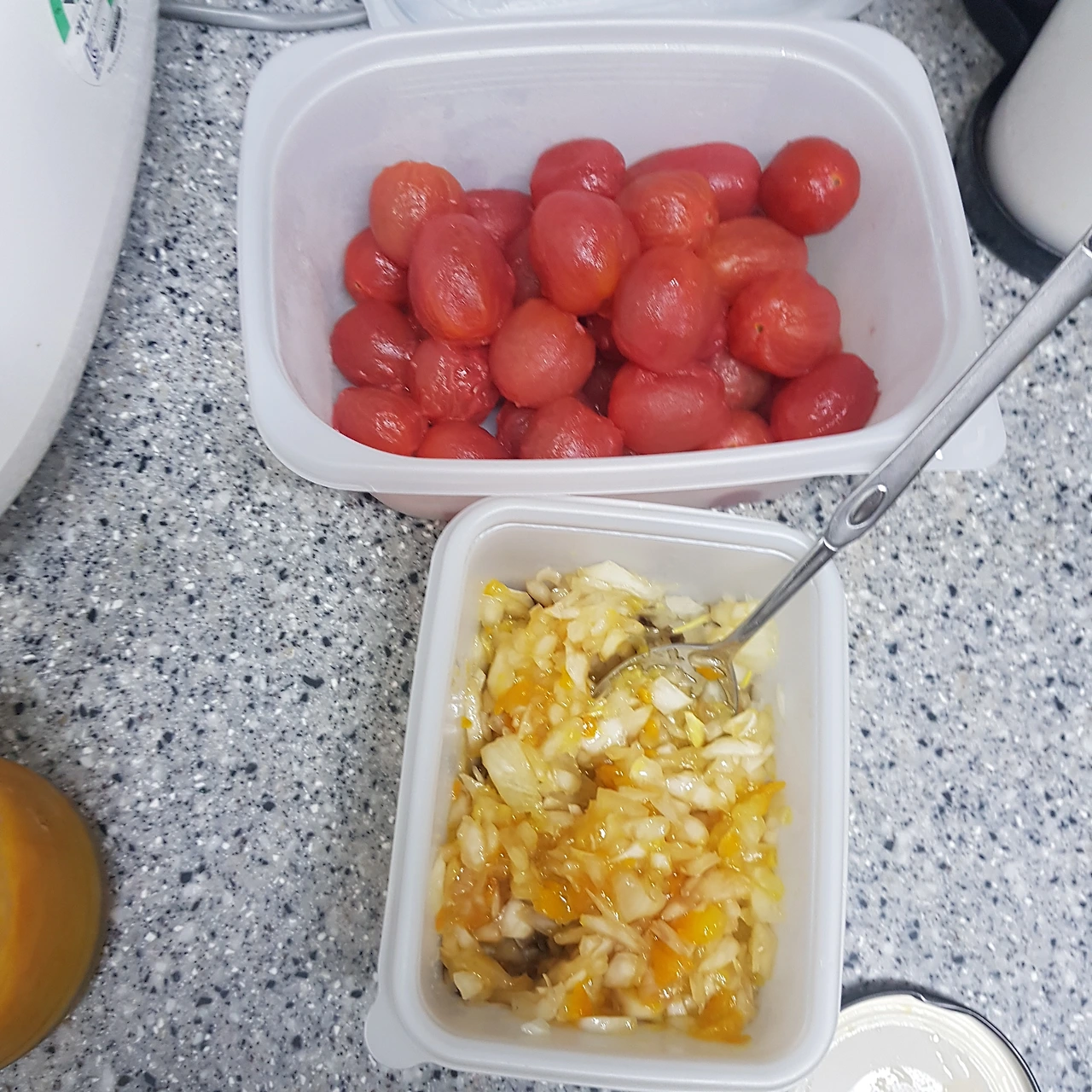 토마토 절임 자체는 네모 박스처럼(어쩐지 약간 생활의지혜(?) 같은 느낌이다) 정말 간단한데, 저 소스의 레시피와 토마토와의 비율이 중요했던 것 같다. 나는 대충 큰 숟가락으로 발사믹 식초 3, 금귤청 1.5, 올리브오일 5, 다진 양파 1/3개, 소금 2티스푼(언니가 간 보고 추가했다), 바질럽드 왕창과 후추를 넣었는데, 지금 레시피를 다시 보니 남은 양파를 쓰느라 마늘을 넣지 않았어서 맛이 더 달랐던 것 같기도 하다. 보았던 다른 레세피에는 양파 매운기를 빼라고 되어 있었는데 그런 귀찮은 작업을 생략했기 때문에 더더욱 하루만에는 맛이 들지 않았던 것도 같다.