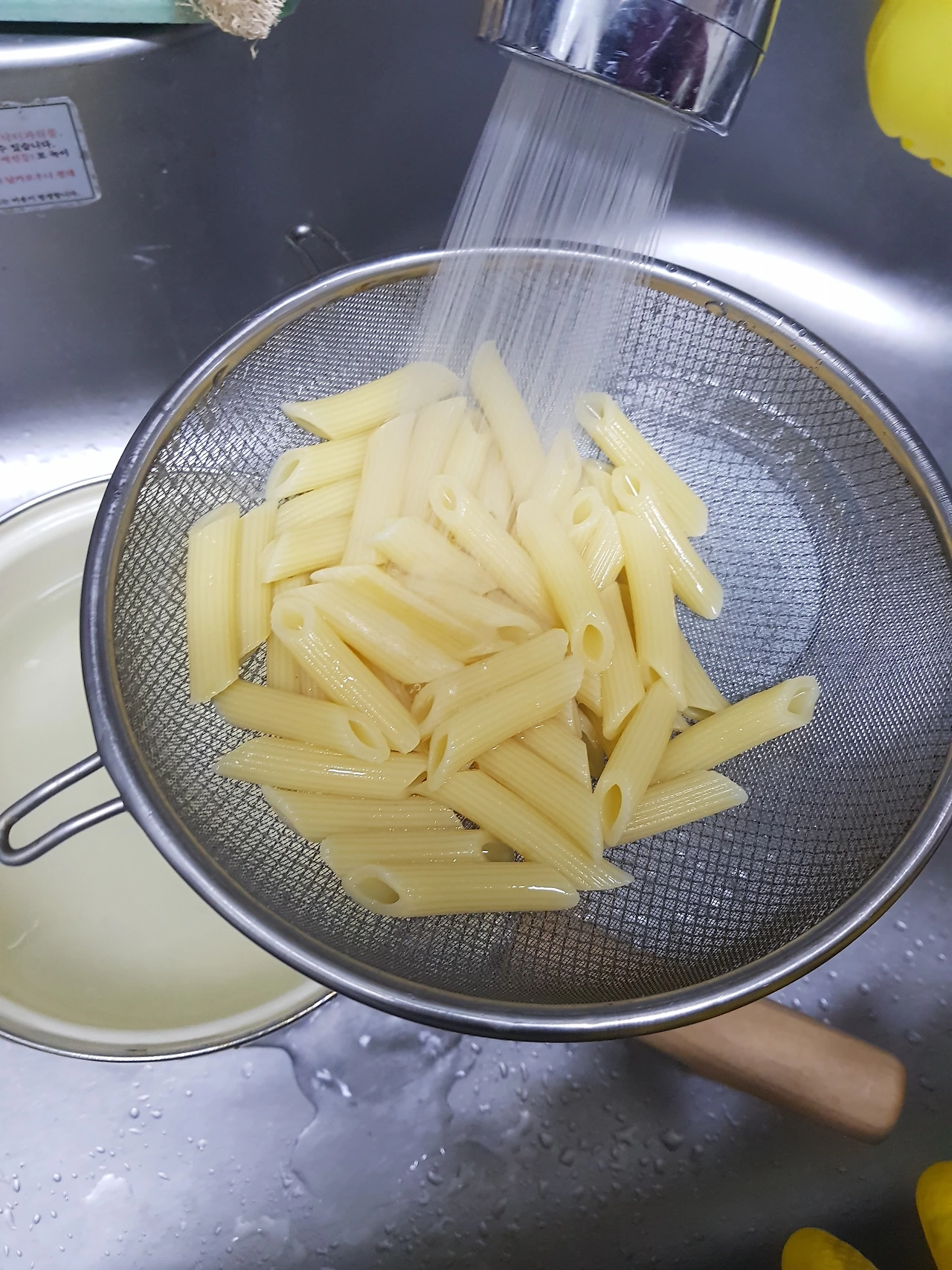 집에 숏파스타가 떨어져서 푸실리(나사선이 있는 숏파스타)를 사야지~ 하면서 나갔는데, 세상에. 롯데마트에서 펜네를 천원에 파는 거다. 지갑이 가벼운 자취생은 오늘도 목표가 바뀌어 돌아왔다. 그래도 500g에 천원인 펜네랑 사천원인 푸실리가 있으면 보통 다들 같은 선택을 하지 않을까...ㅠ 개인적으로 펜네는 꾸덕한 파스타가 더 어울린다고 생각하긴 했지만, 지갑에 타격은 좀 줄일 수 있었다. 두고두고 먹지 뭐.