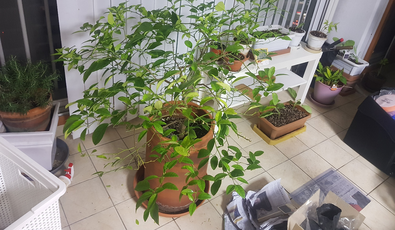 오늘의 자랑은 내 멋진 베란다 화분들. 잘 키워서 다 잡아먹어야지.