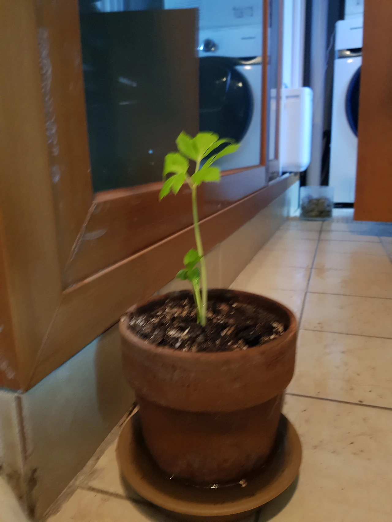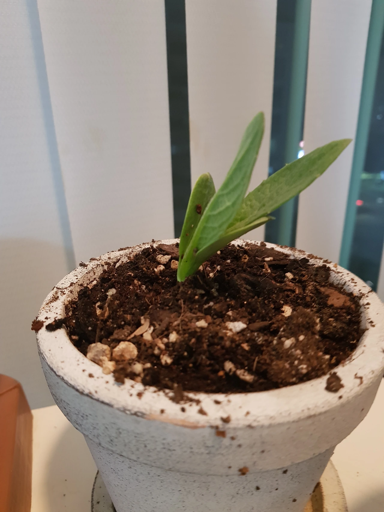 첫 분갈이. 아티초크. 가운데가 아니어서 슬프다