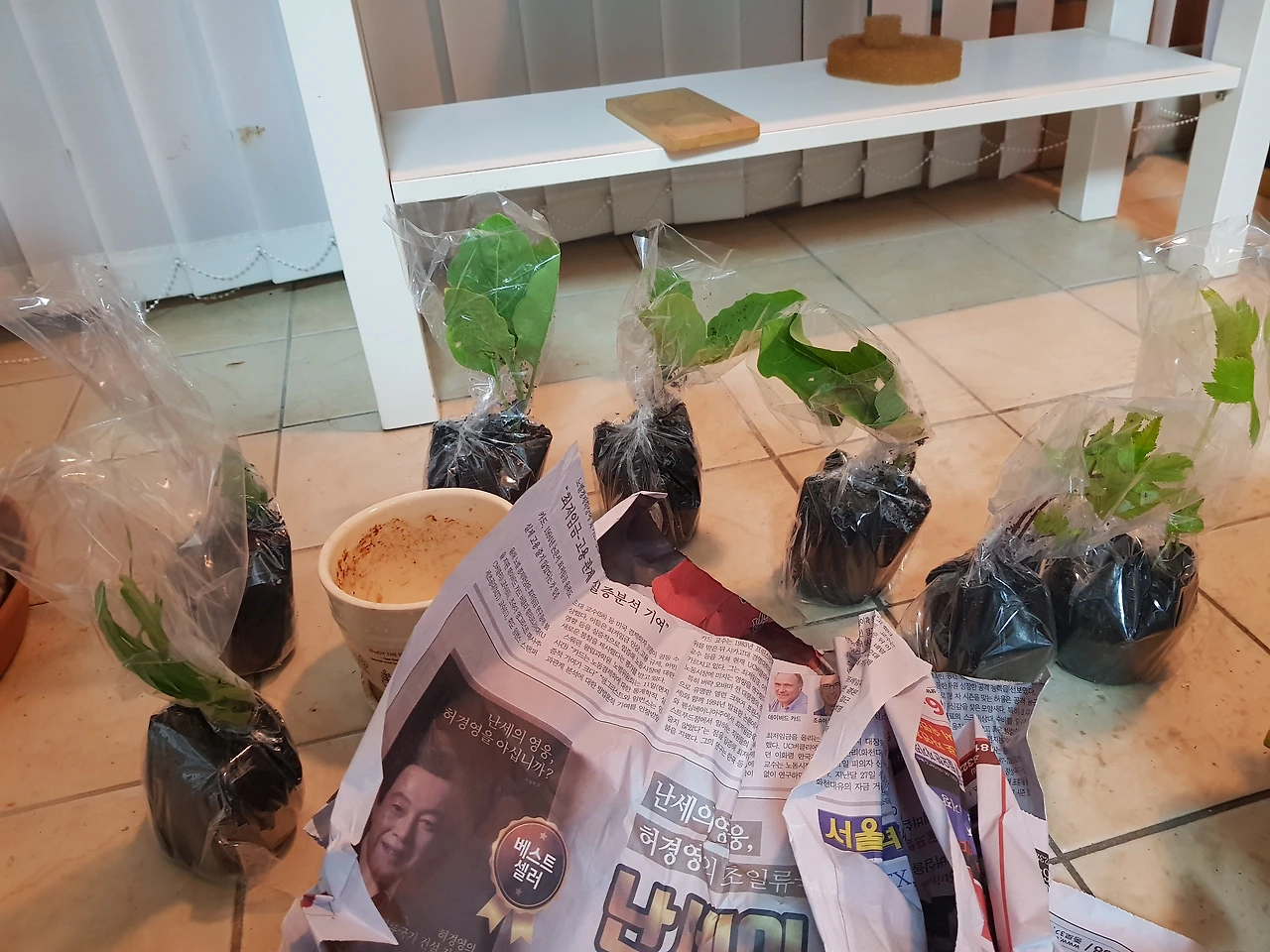 생각보다 모종이 엄청 크게 왔다. 한 시간 넘게 분갈이했다.