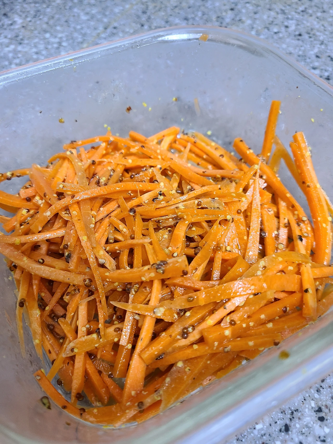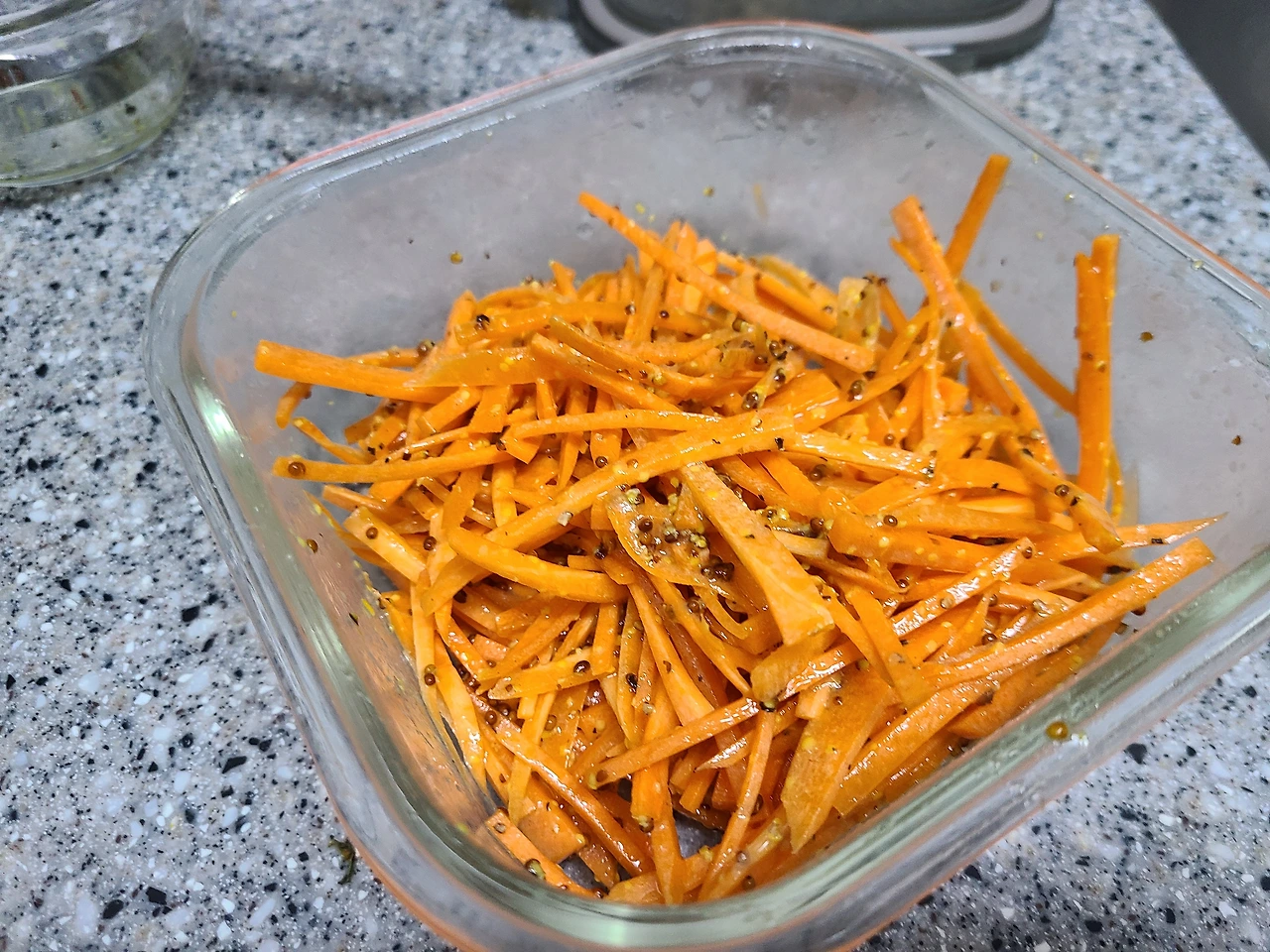 그렇게 다시 꼬박 4일을 방치하고, 오늘 글을 쓰면서 다시 꺼내어 맛을 봤다. 이건.... 이건 생 당근이 아닌 절여진 당근이다! 간도 그럭저럭 뭔가 있다! 그래서 급하게 글 제목을 '당근라페 실패기'에서 '소생기'로 바꿨다. 밤이라 더 먹어볼 수는 없지만, 어쨌든 이 정도면 먹을 수는 있을 것 같다. 비록 다음에는 당근을 한 번 더 채썰게 된다면 당근 라페가 아닌 당근김치를 할 것 같지만. 아, 이렇게 되면 또 홀그레인 머스타드는 5년간 방치되어 버려지게 되려나? 뭔가 다른 방식으로 사용할 방법을 찾아 보긴 해야겠다. 식재료의 세계는 아직 초보 자취러에게 너무 넓은 것 같다. 그래도 당근 라페는 살려서 다행이지만! 내일 아침에 일찍 일어나면 샌드위치를 해 봐야지.