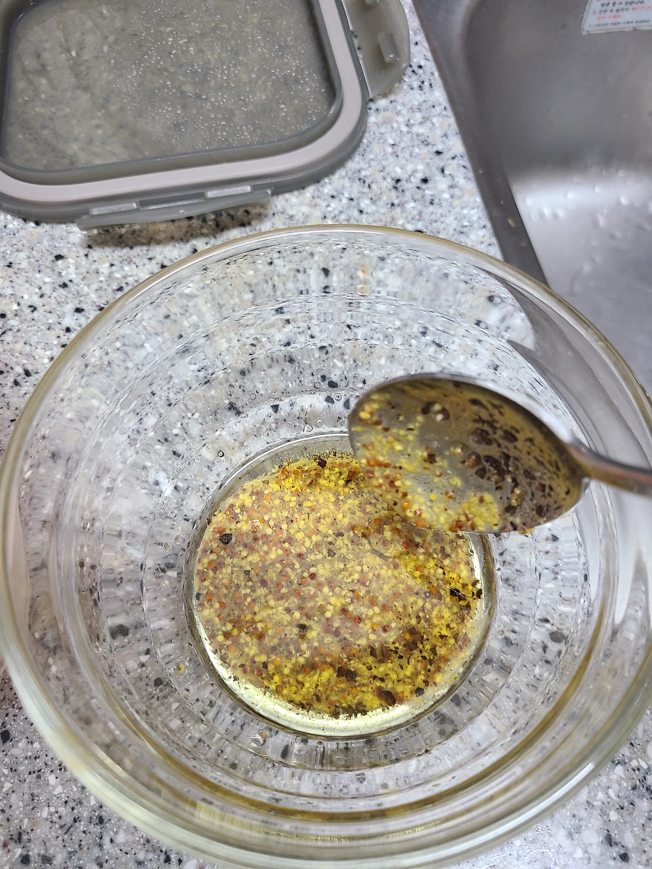 이 당근으로 무얼 할까. 저번에 맛있게 먹었던 러시아식 당근 김치를 만들려고 마음만 먹고 있다가, 문득 외근 나간 곳에서 혼밥을 했다가 들른 세계재료(?) 마트 같은 데에서 우연히 홀그레인 머스타드를 마주치고는 당근 라페를 하기로 마음을 먹었다. 저번에 당근김치를 만들 때 이름이 라페인 줄 알았다가 다르다는 걸 알게 되었을 때, 라페는 머스타드가 필요해서 포기했었기 때문이다(사실 냉장고에 머스타드가 있었지만 유통기한이 2017년인가 까지길래 미련 없이 버려버렸었다). 유리병이 무거웠지만 자취방까지 열심히 짊어지고 와서는, 친구들과의 피크닉을 위해 당근라페 샌드위치를 하겠다며 빵까지 챙겼지만 결국 야근에 절어 포기하고 방치하다 드디어 냉장고에서 꺼내 보았다.