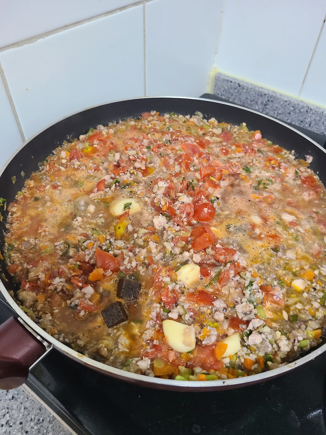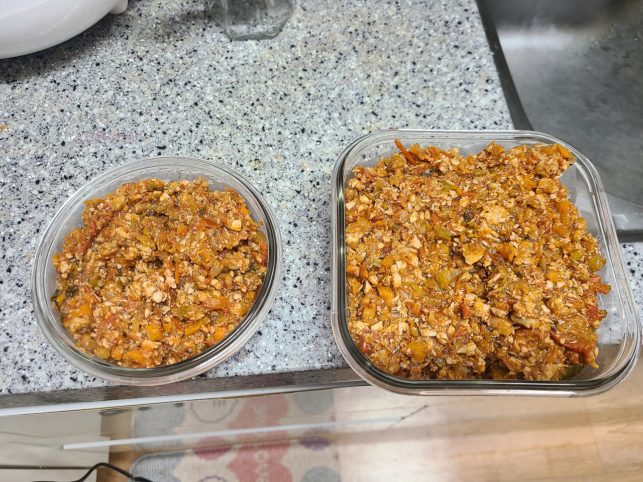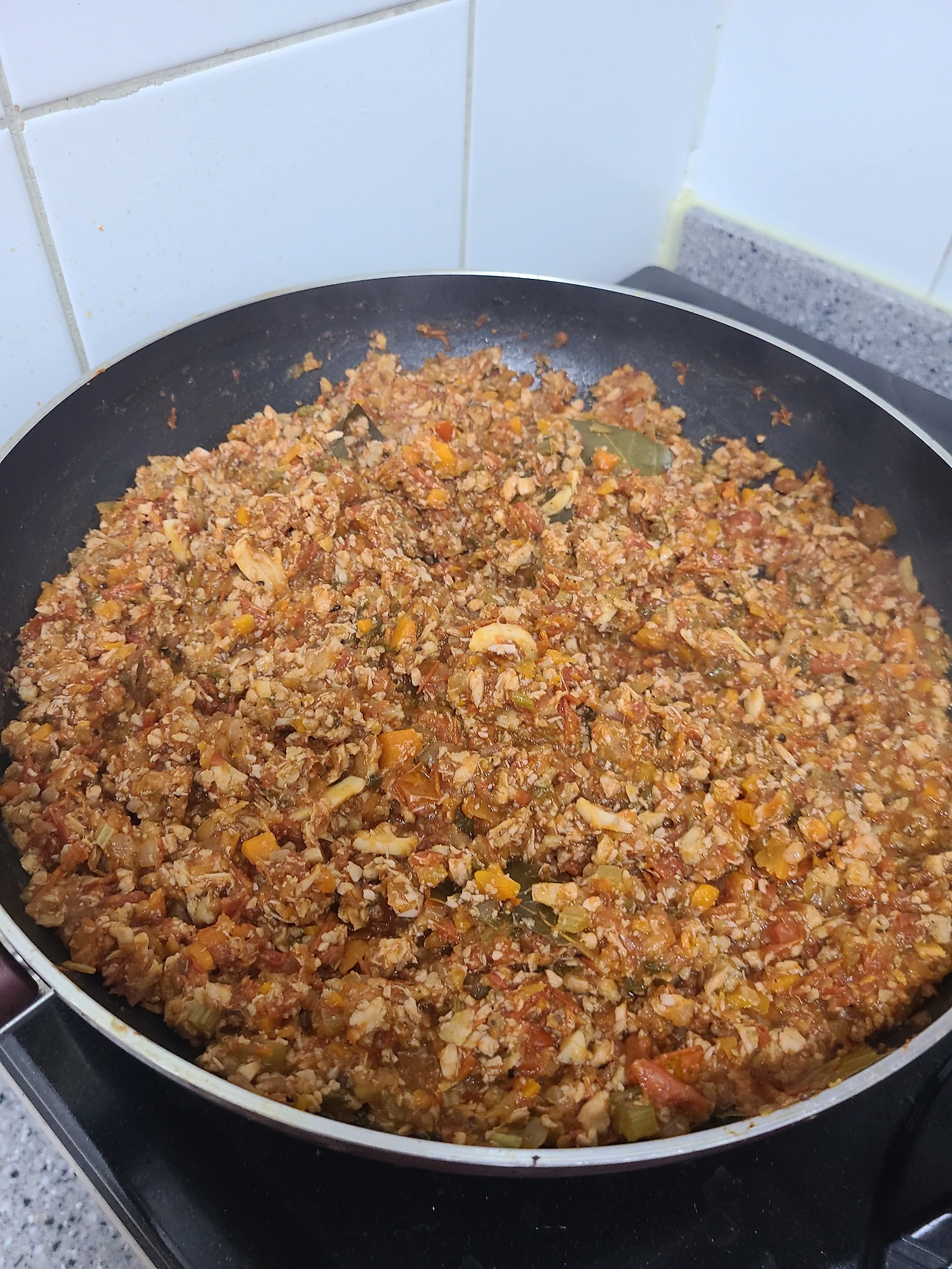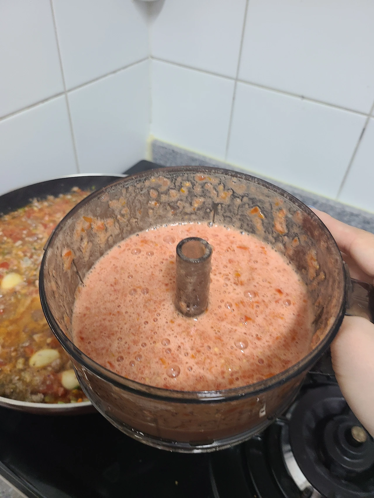 레시피는 생각보다 간단하다. 온갖 재료들을 다 다듬어서 다지기 기계로 갈고, 팬에 볶아 익힌 뒤 물을 좀 넣고 잘 졸이면 된다. 계량은... 냉장고 털기가 목적이라 딱히 열심히 하지 않았다. 모자라면 모자란 대로, 많으면 많은 대로 먹지 뭐. 당근, 샐러리, 양파 비율만 1대 1대 1에서 양파를 좀 더 쓰는 사람들이 있길래 대애충 비슷한 수준에서 양파를 조금 더하려고 했다. 마늘은 귀찮아서 다지지도 않았다. 익히면서 적당히 으깼다.