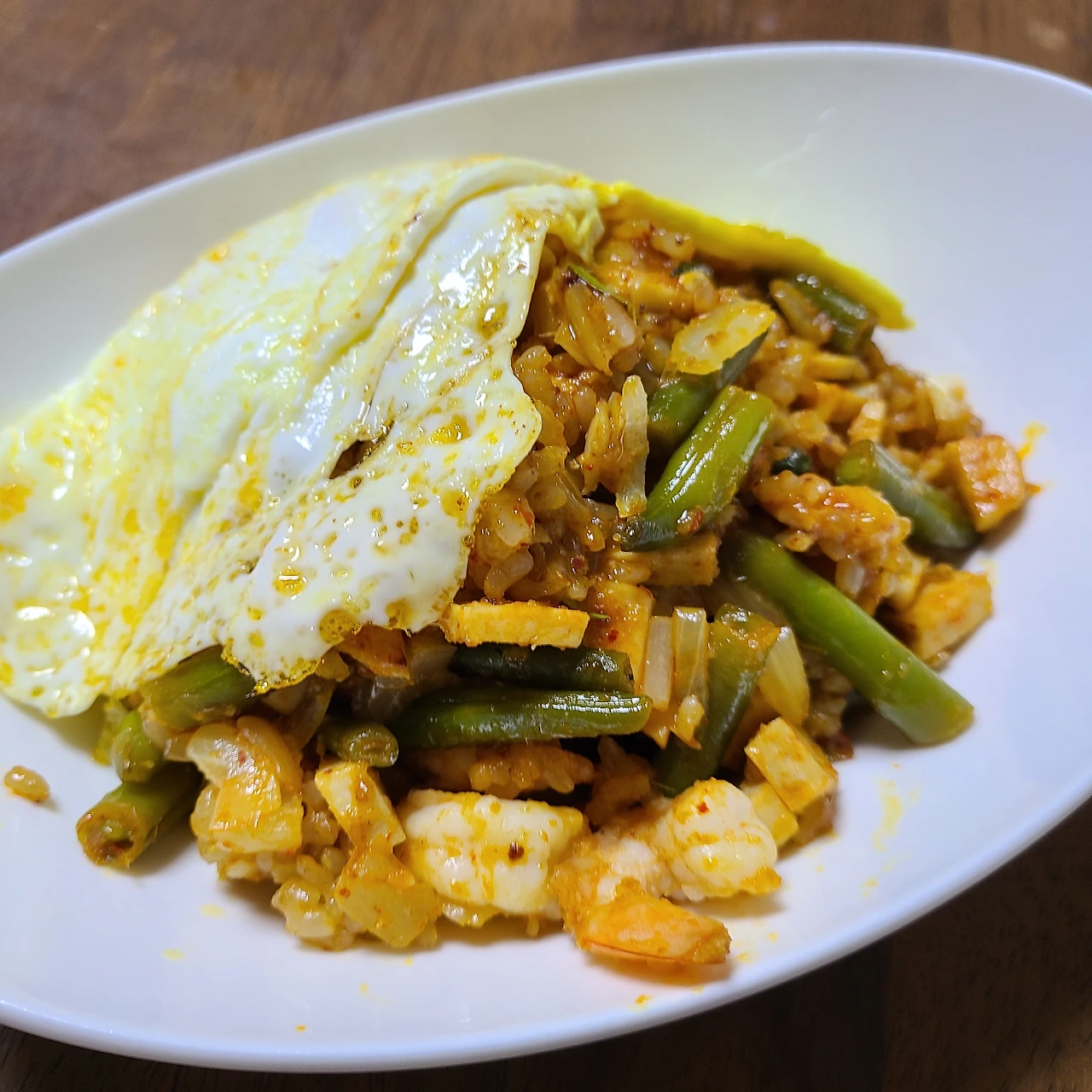 이건 사실 레시피북이 아니라 인터넷에서 봤다. 구글에서 "레드커리 볶음밥'을 치니까 나온 아시안마트 레시피였다. 레드커리를 만들 때 그린빈을 넣다가 좀 많이 엎었는데, 이미 양념이 묻어서 그냥 한 번에 만들고 이걸 해결하기 위해 볶음밥을 해야 했다. 대충 레시피 중 집에 있는 양파, 새우, 닭가슴살을 넣고, 간만에 계란후라이도 해서 넣었다. 피망은 우리집에 절대 없을 예정이라 넣지 못했다. 자취요리 컬렉션들 중에 제일 뭔가 요리스러운 느낌이었다! 계란후라이는 간만에 했더니 또 깨져서... 다시 연습을 좀 더 해야겠지만, 나름 스스로를 잘 먹이면서 사는 것 같아서 어깨가 조금 으쓱하다. 나트륨은 모르겠고 기분은 일단 좀 건강해진 것 같다!