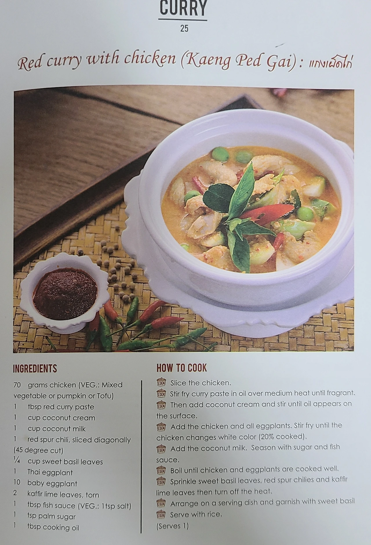 취직을 하여 돈을 벌게 되고, 여전히 태국 음식에 목말라하다 다시 간 태국에서는, 요리를 좋아하는 친구와 각 잡고 쿠킹클래스부터 들었다. '19.10월 기준, 뭔가 클락 비슷한 그런 어플로 인당 삼만원대 정도에 예약했던 것 같다. SOMPONG THAI COOKING SCHOOL 이었다. 오 오늘도 빌드업이 너무 기네. 아무튼 영어가 유창하셔서(친구가 가끔 통역해줬다) 너댓가지 요리를 만들었는데, 설명도 자세했고, 무엇보다 쿡북을 마지막에 주셔서 두고두고 써먹을 수 있었다. 내 글에 등장하는 쏨땀, 커리 등은 다 요 레시피를 바탕으로 한 요리들이다. 책도 작아서 전자렌지 위에 두고 있다.
