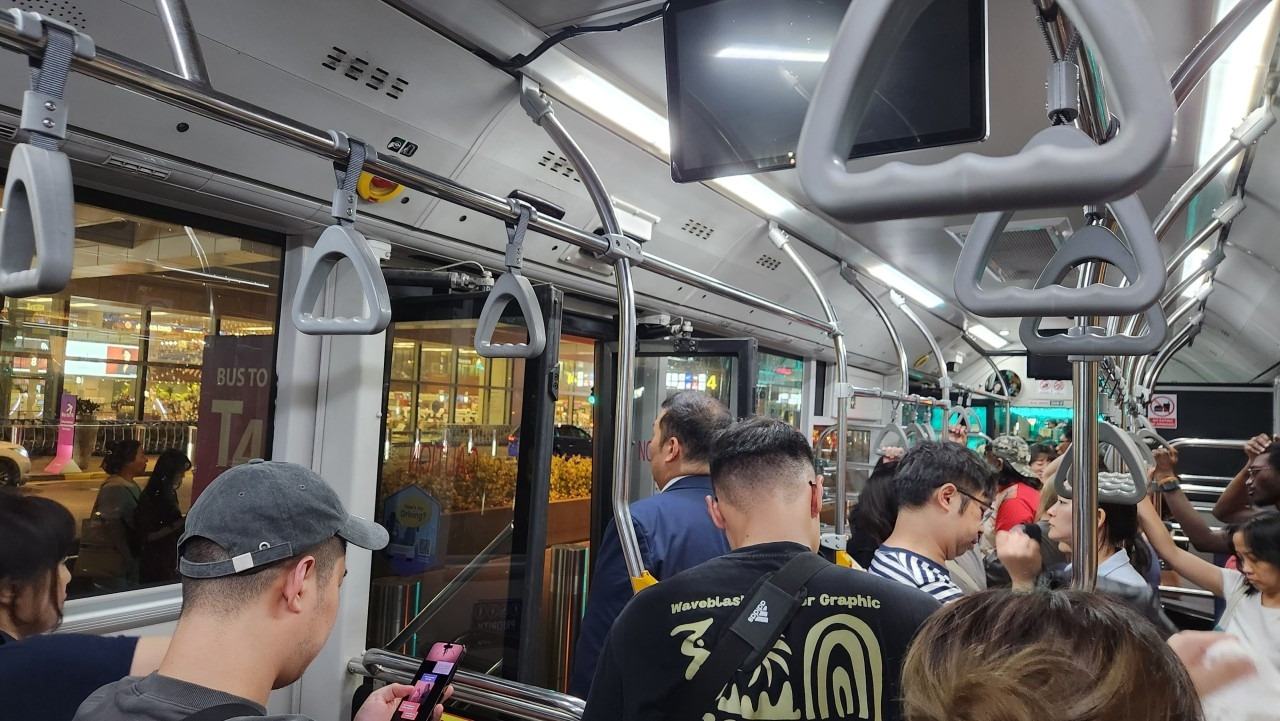 올해 8월말에 헤일리와 싱가포르 공항에서 헤어지는날 4공항으로 가는 셔틀버스안에서 아이가 엄마 아빠를 배웅해줬다.하지만 셔틀이 바로 출발하지 않고 서 있었다.