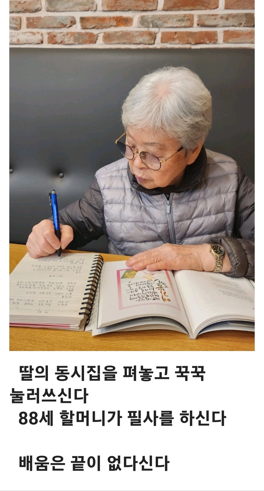 오늘은 내가 출간한 동시조집을 펴놓고 필사를 하셨다.