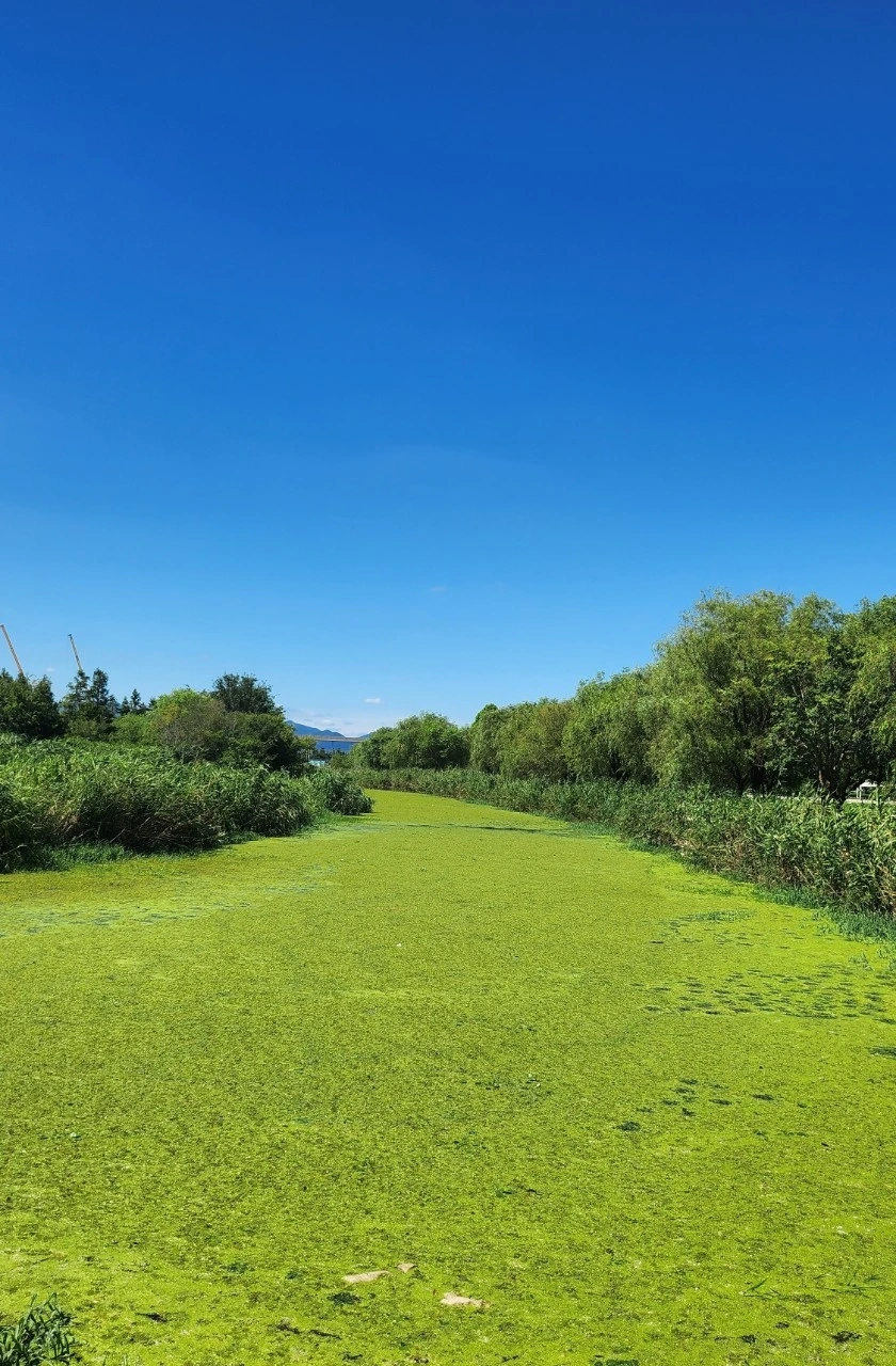 생태계 공원에 갔다가 녹조에 휩싸인 강줄기를 보았다.