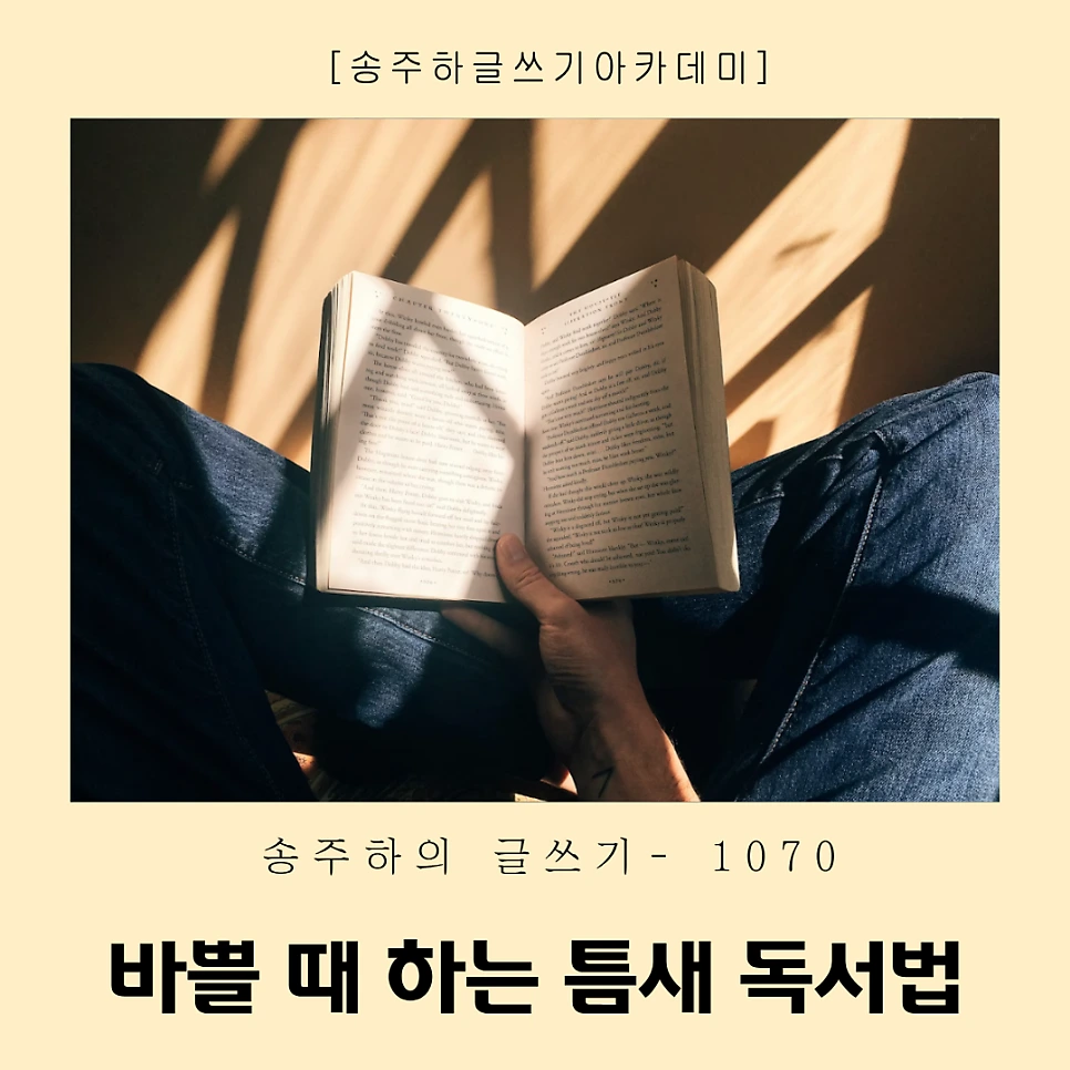 저 뿐만 아니라 대부분 하루를 살아내느라 시간이 부족합니다. 여유를 가지고 살라고는 하지만, 막상 해내야 하는 일이 많은 사람에게는 공자님 말씀이지요. 그럼 이럴 때는 어떻게 독서를 하는 게 좋을까요? 바쁜 사람들을 위한 '틈새 독서법'에 대해 잠시 이야기해 보려고 합니다.